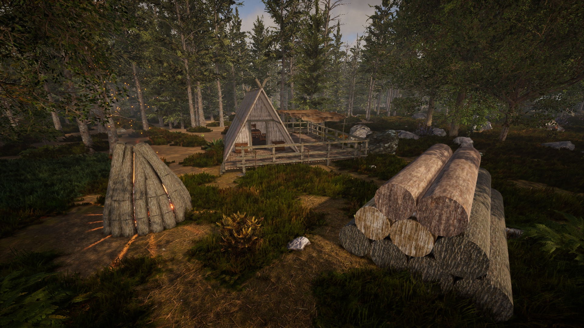 Köhlerhütte mit Kohlenmeiler