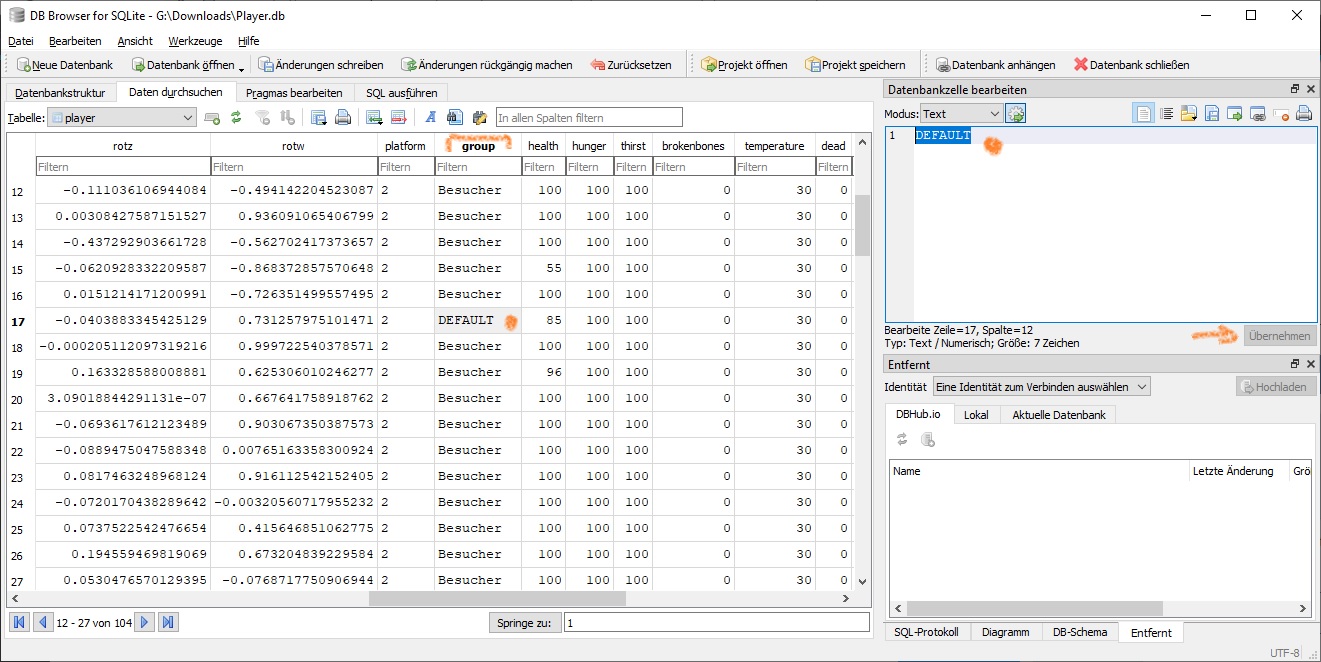 But that would also affect the inventory and position of each player. If you open the database as described above, there is also a "group" tab in the list.