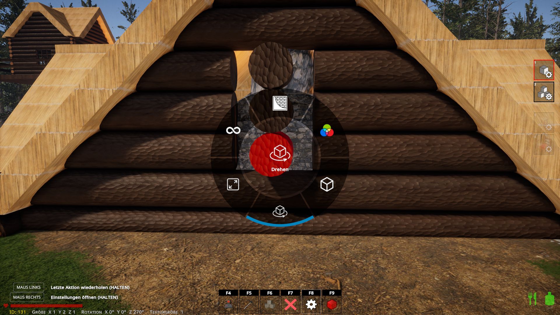 Aber nun Problem: Die Zylinderblöcke der Wände sind alle um 90° gedreht. ![]()