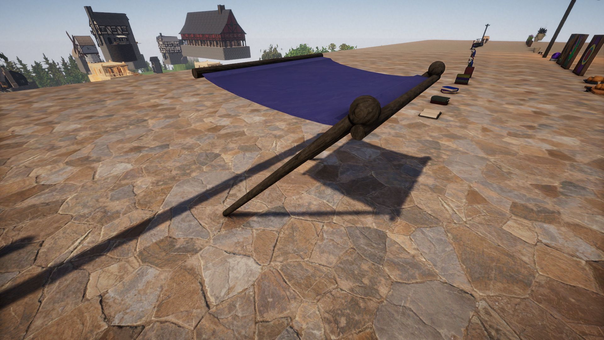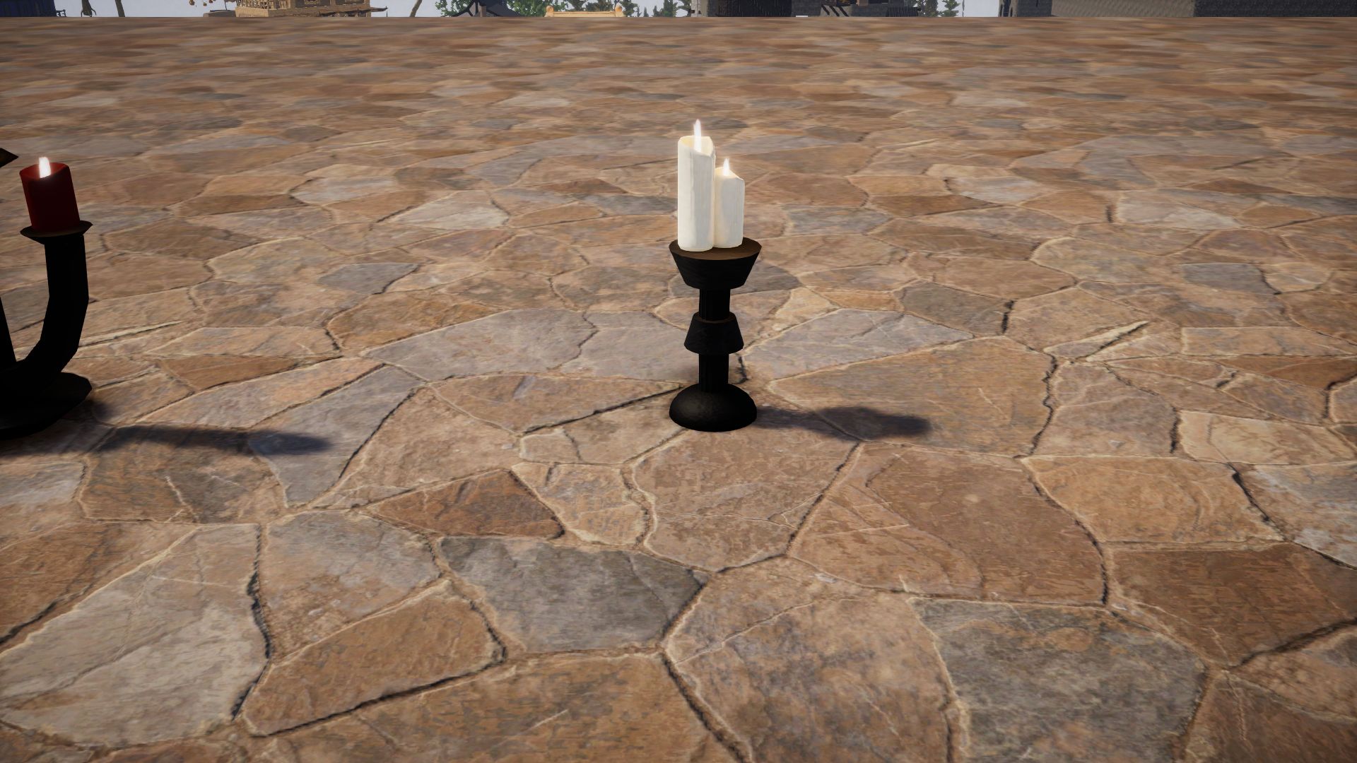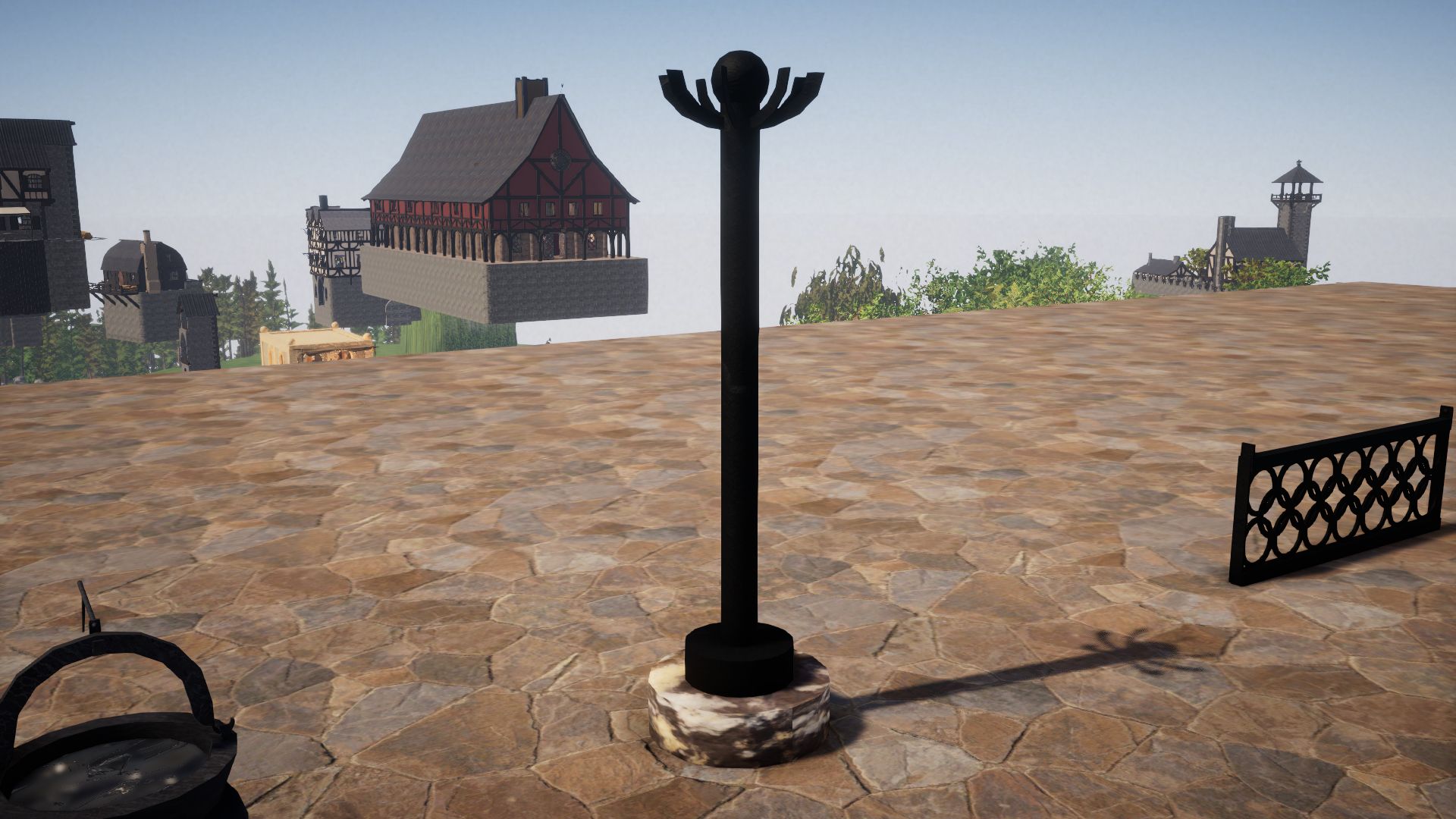 Most of these are indoor, so lets begin with the few outdoor fixtures, like this cloth window awning, wood flower boxes and hanging clay flower pots (one non-hanging pot included with no plant). As well as a free standing lamp post.