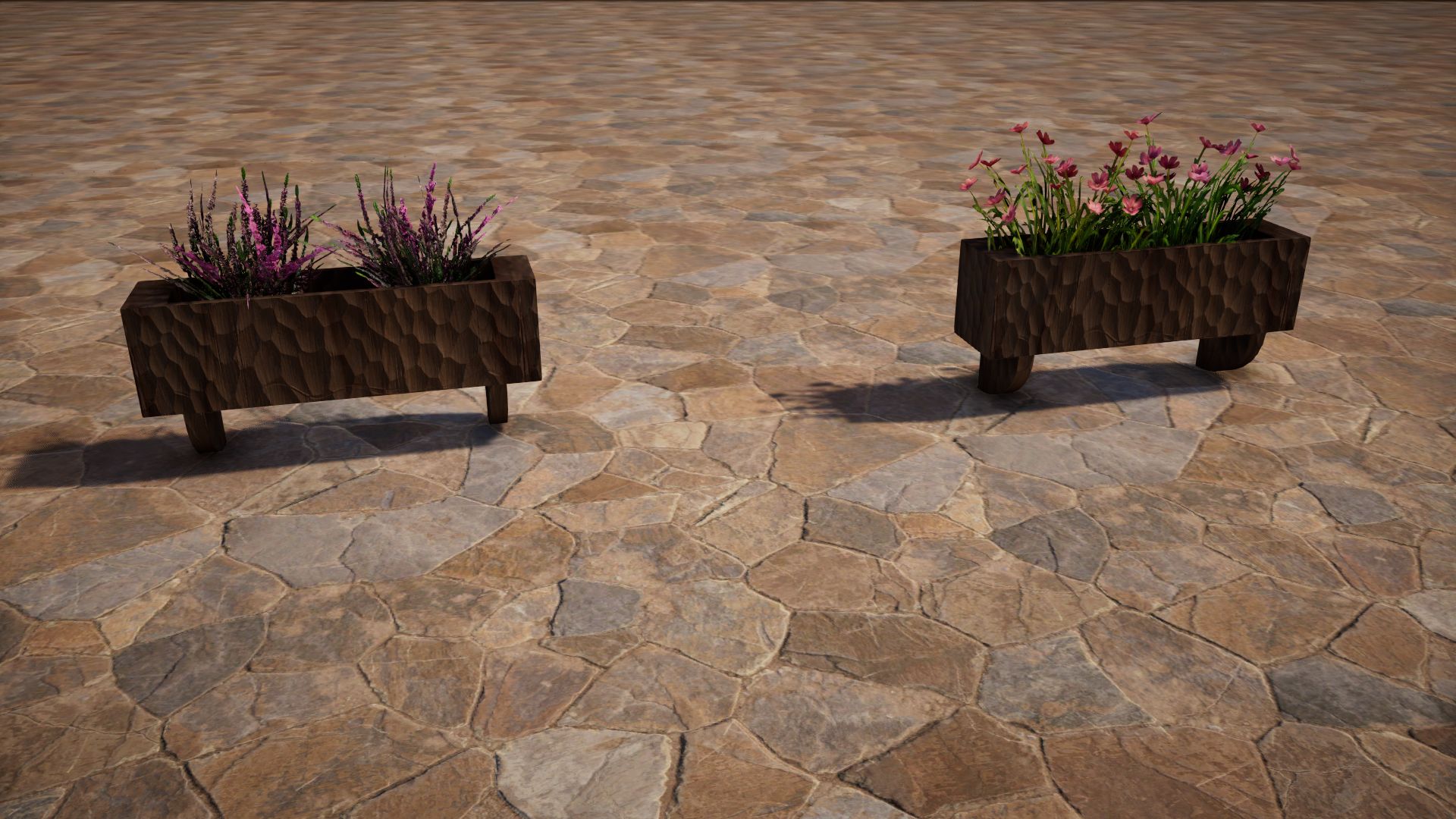 Most of these are indoor, so lets begin with the few outdoor fixtures, like this cloth window awning, wood flower boxes and hanging clay flower pots (one non-hanging pot included with no plant). As well as a free standing lamp post.