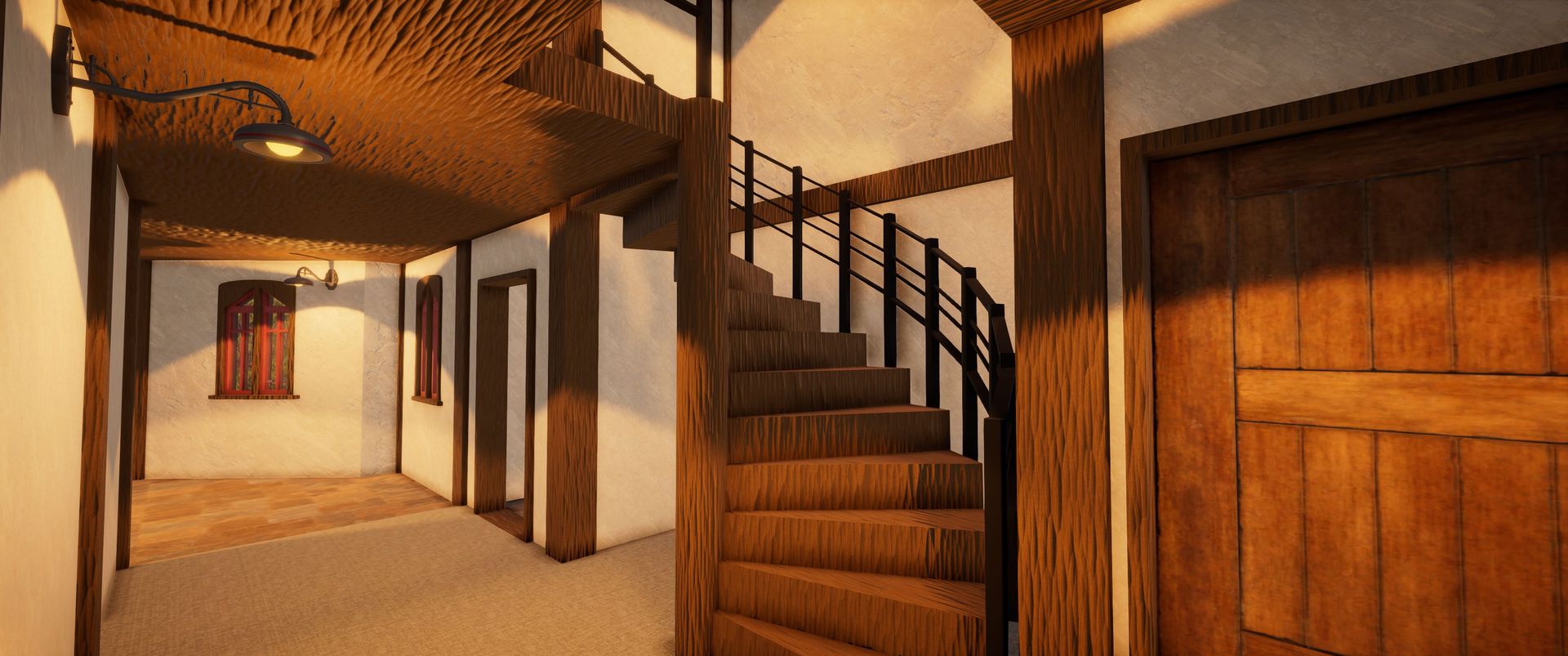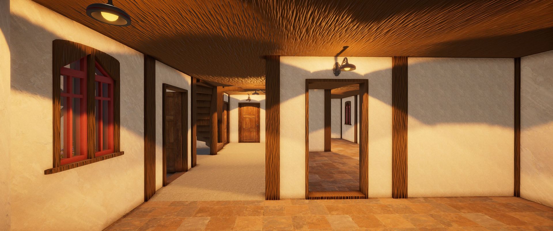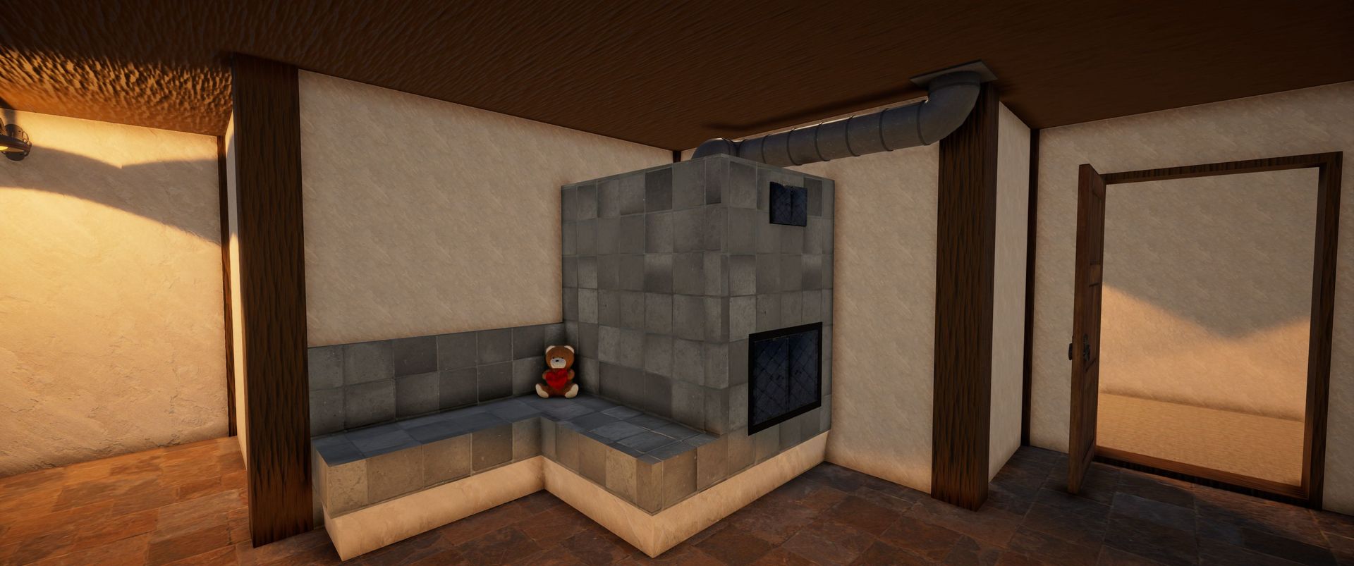 Das Haus ist von den Zimmern her schon eingeteilt, ist aber nicht ausgebaut, abgesehen von einem Kachelofen im EG und Wandleuchten.