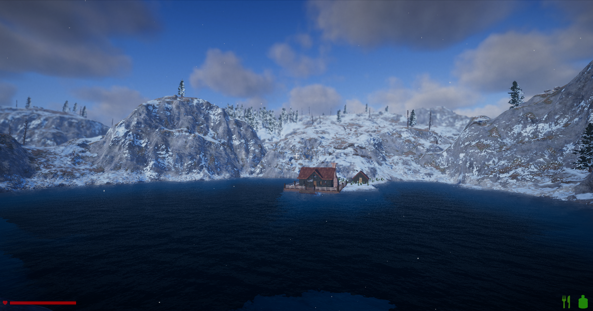 I built this little house in the Arctic, with a fireplace for warmth and standard furniture.