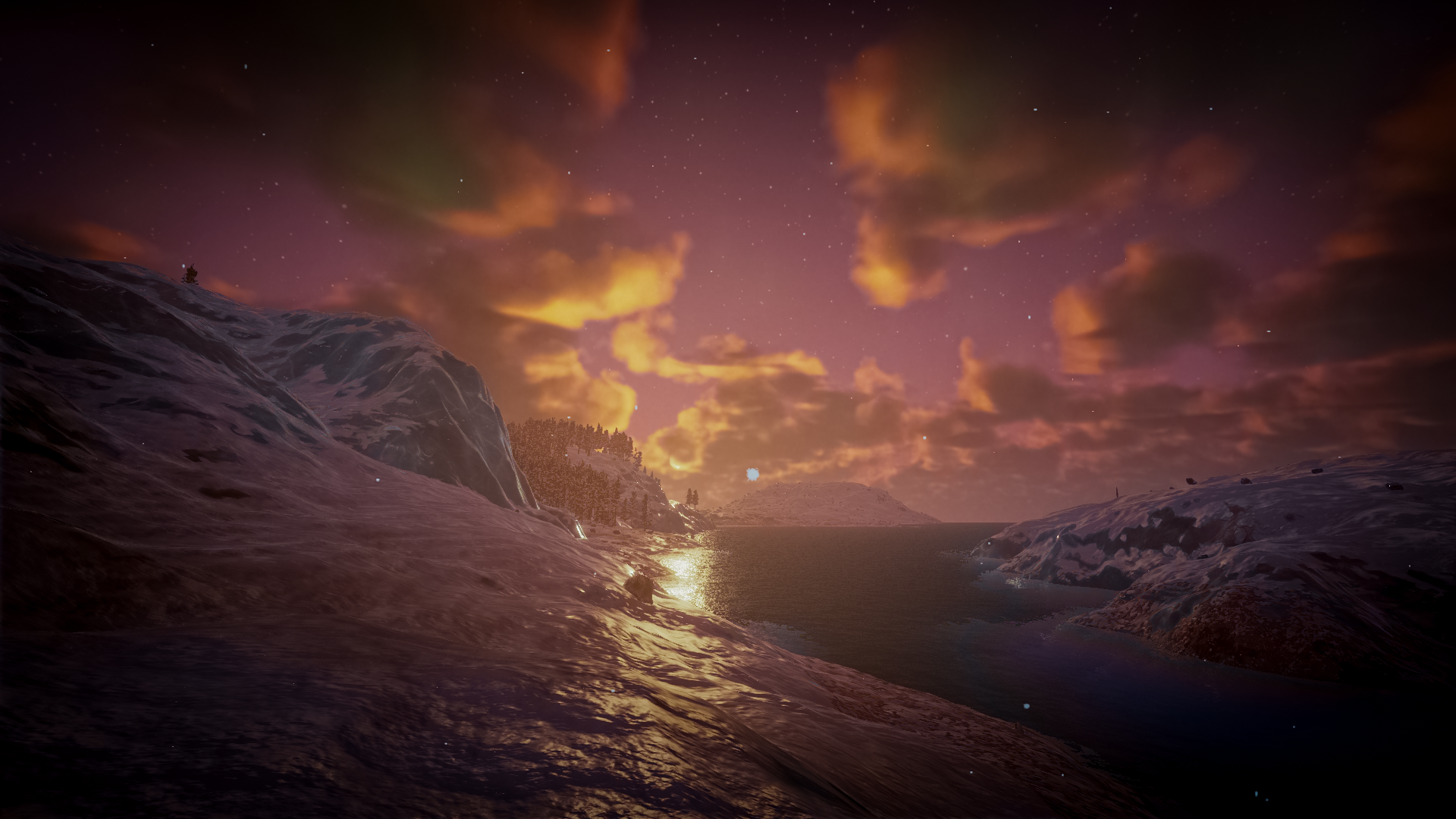 Great post! I've always felt that the unity version gave this game so much more depth and visual pleasantry. The aurora and countless sunsets, moon phases and cloud/fog emersion really take the ambiance to a whole new level. I would like to contribute a few screenshots that I've taken on my travels that capture the moments I found myself surrounded by beauty and immersed in sublime ambiance!