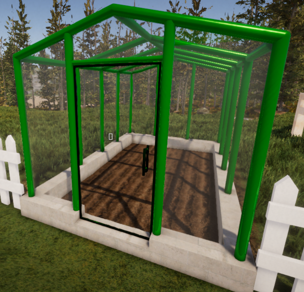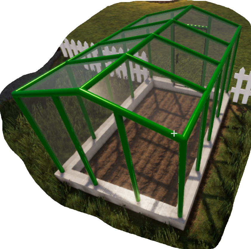 Metal greenhouse with stone foundation. 6x9.5 units.
