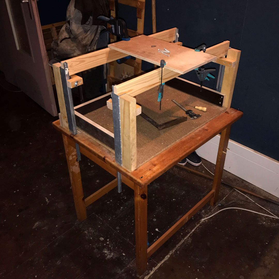 Er besteht aus 2 Vorrichtungen um ein Smartphone zu platzieren, die Möglichkeit durch verschiedene Lichteinstellungen ein spiegelungsfreies Bild zu erzeugen und ist durch Schubladeneinschübe auszieh- und fixierbar.