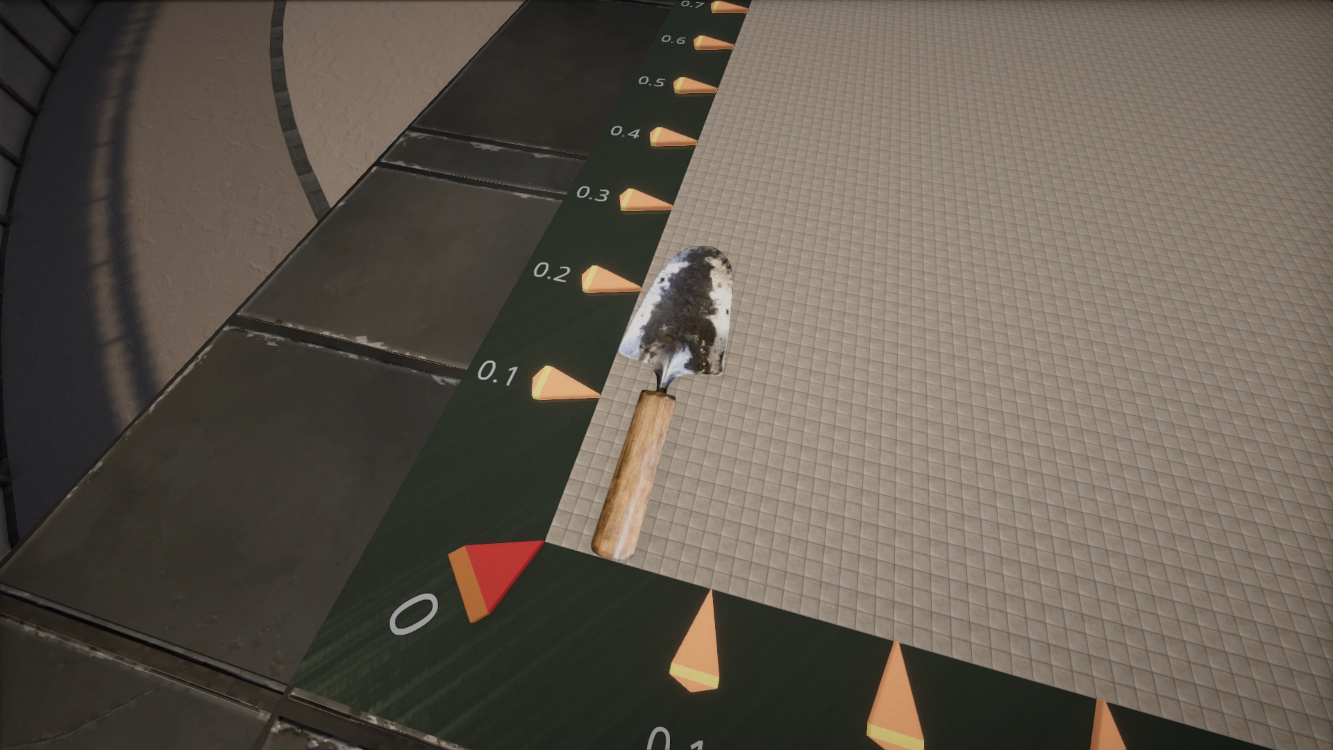 Um einen fotografierten Gegenstand nach der Bildbearbeitung korrekt abzumessen, habe ich ein Gitternetz erstellt. Dazu habe ich eine Fliesentextur in lokaler Ausrichtung auf 0.02 eingestellt und eine Skala hinzugefügt.
