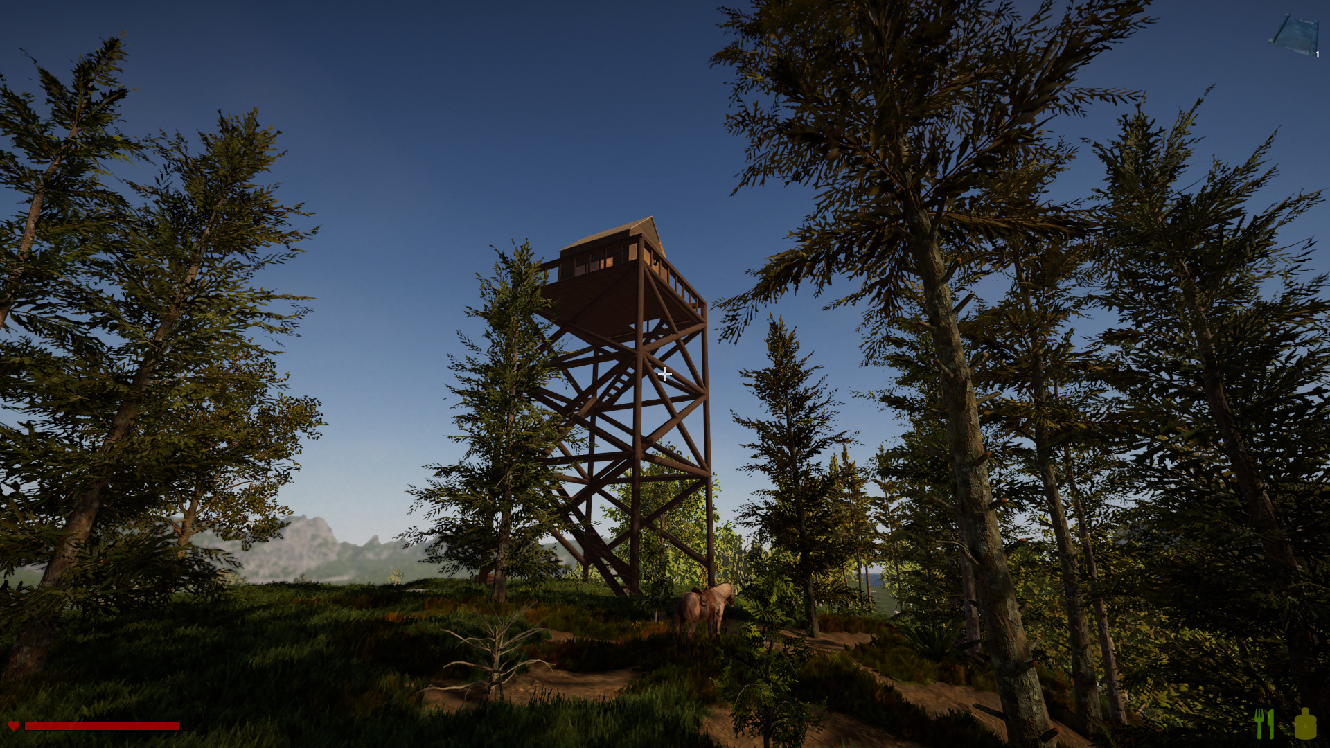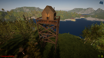 The forestry tower is good to place in a spruce forest, it's higher than trees. I found it especially useful on the arctic island, but I didn't want to copy the tower from The Long Dark. There is a stove and bed inside, and if you stuck on the stairs, just use the "jump" key. The tower can make a perfect location to admire the "Aurora Borealis" over the arctic island.