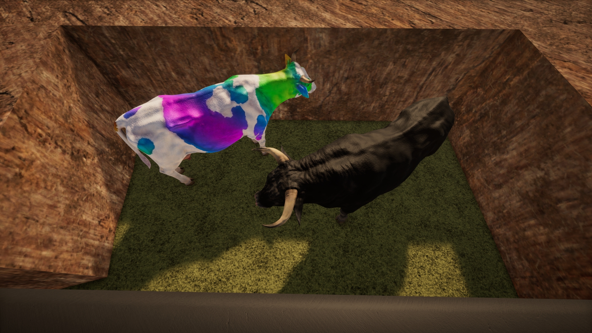 Die Kühe sind noch am beschnuppern, habe schon 2 in die Kuschelecke gepfercht aber so richtig kommen die nicht in Stimmung