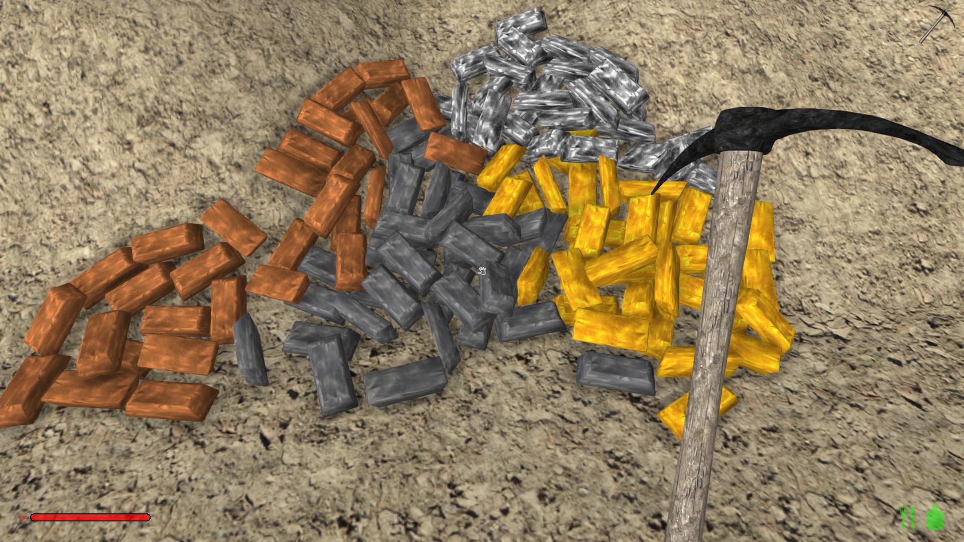 Finally the long awaited ore update is available! For the beginning, it introduces iron, copper, silver, gold, aluminium, tungsten, cobalt and mithril. They can be found at different elevations, the easiest way is to explore caves, then you have the highest chance of finding some ores.