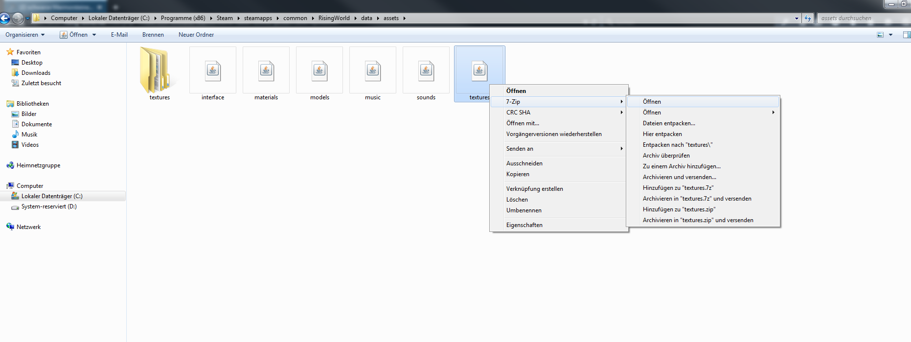 So habe mal alle deine Schritte verfolgt und bin nur bis Textures gekommen dieser Ordner läßt sich nicht öffnen.Scheint leer zu sein.