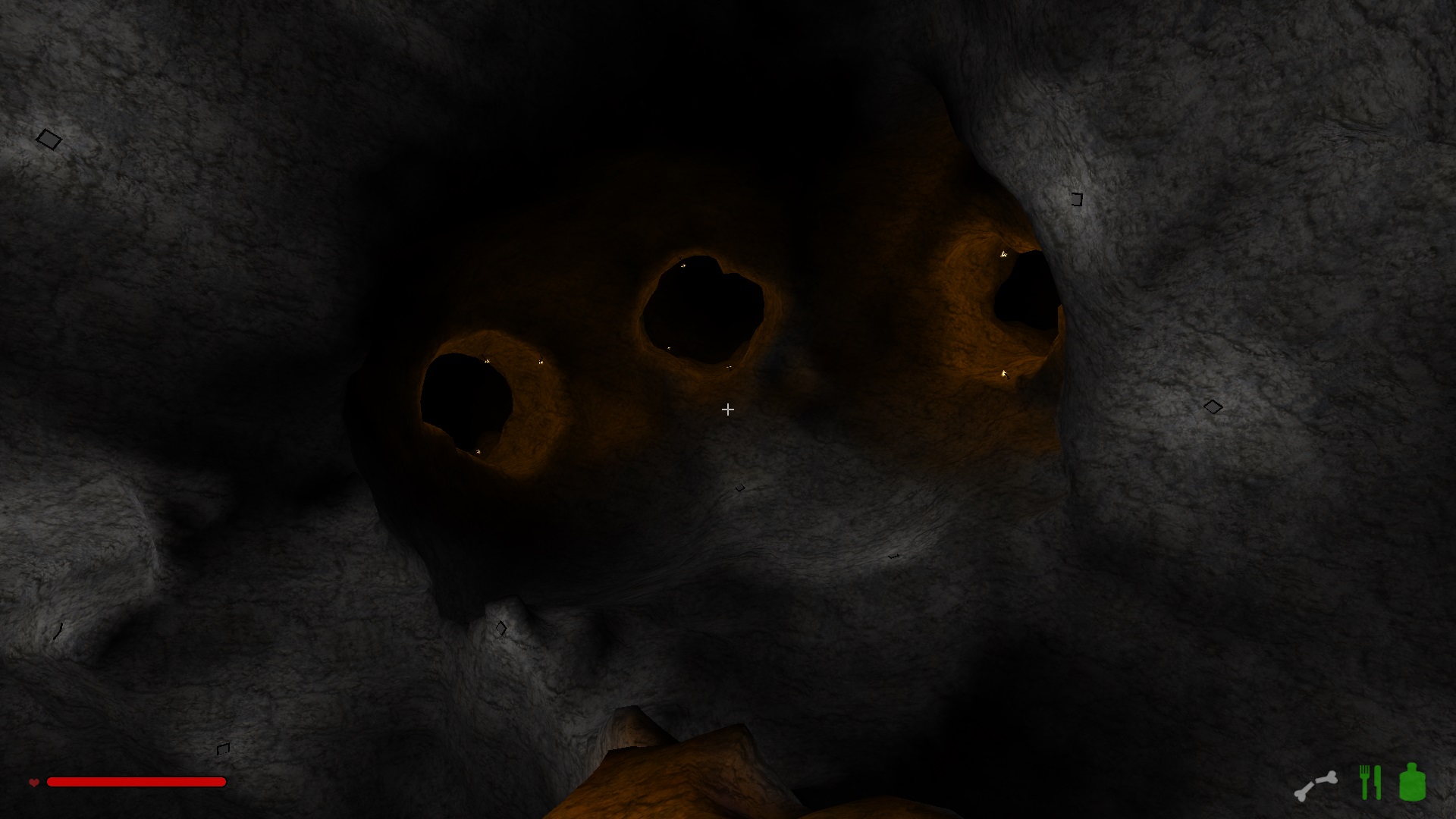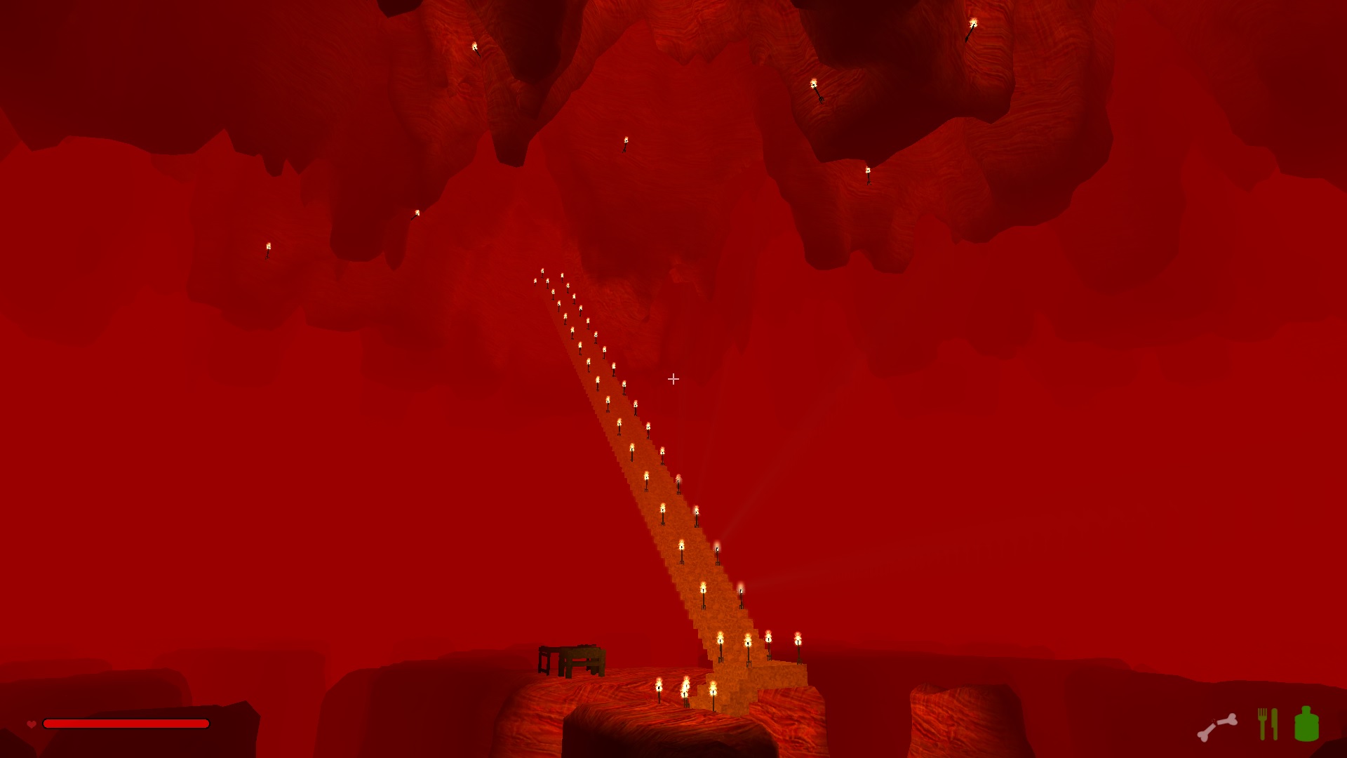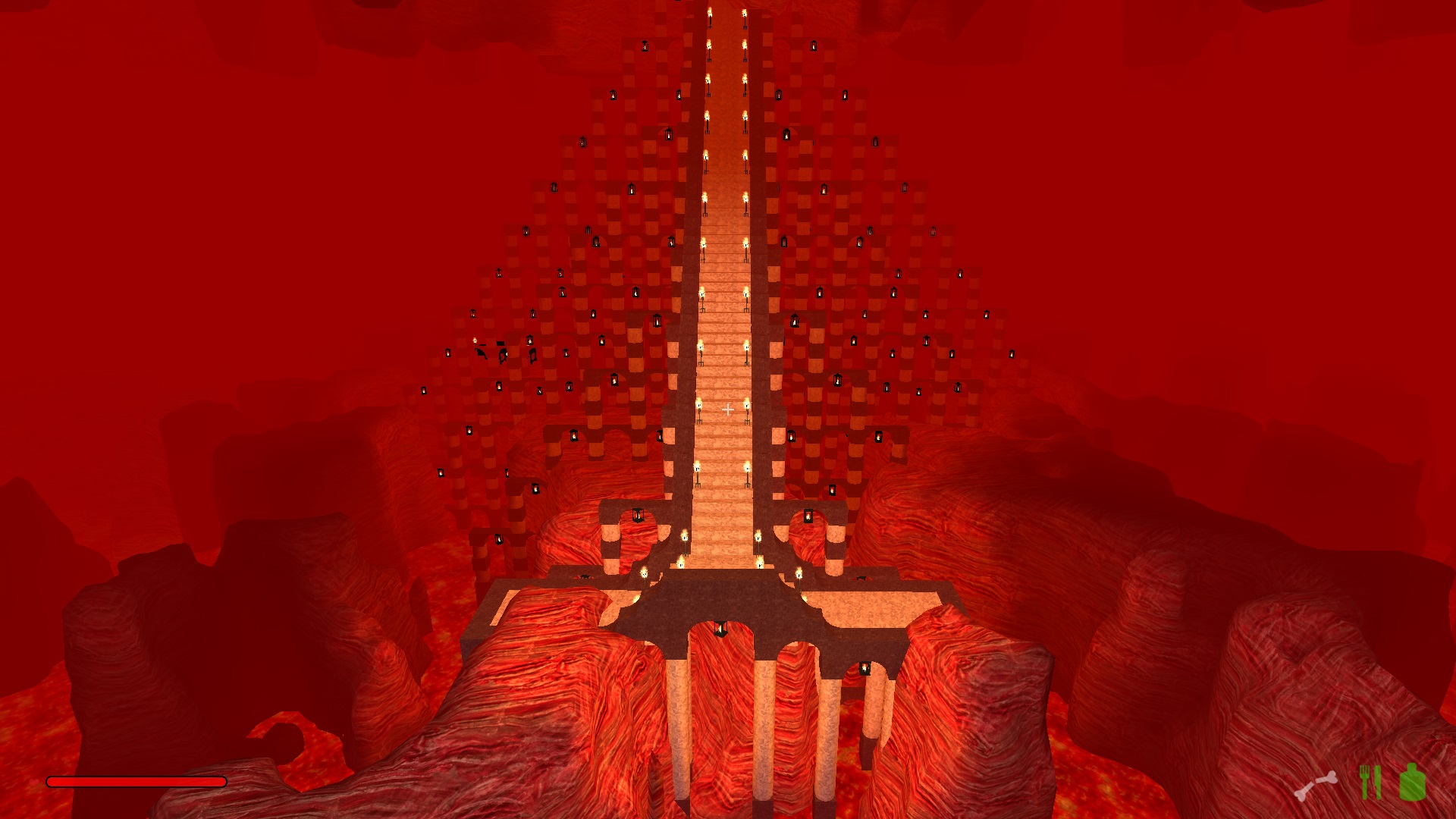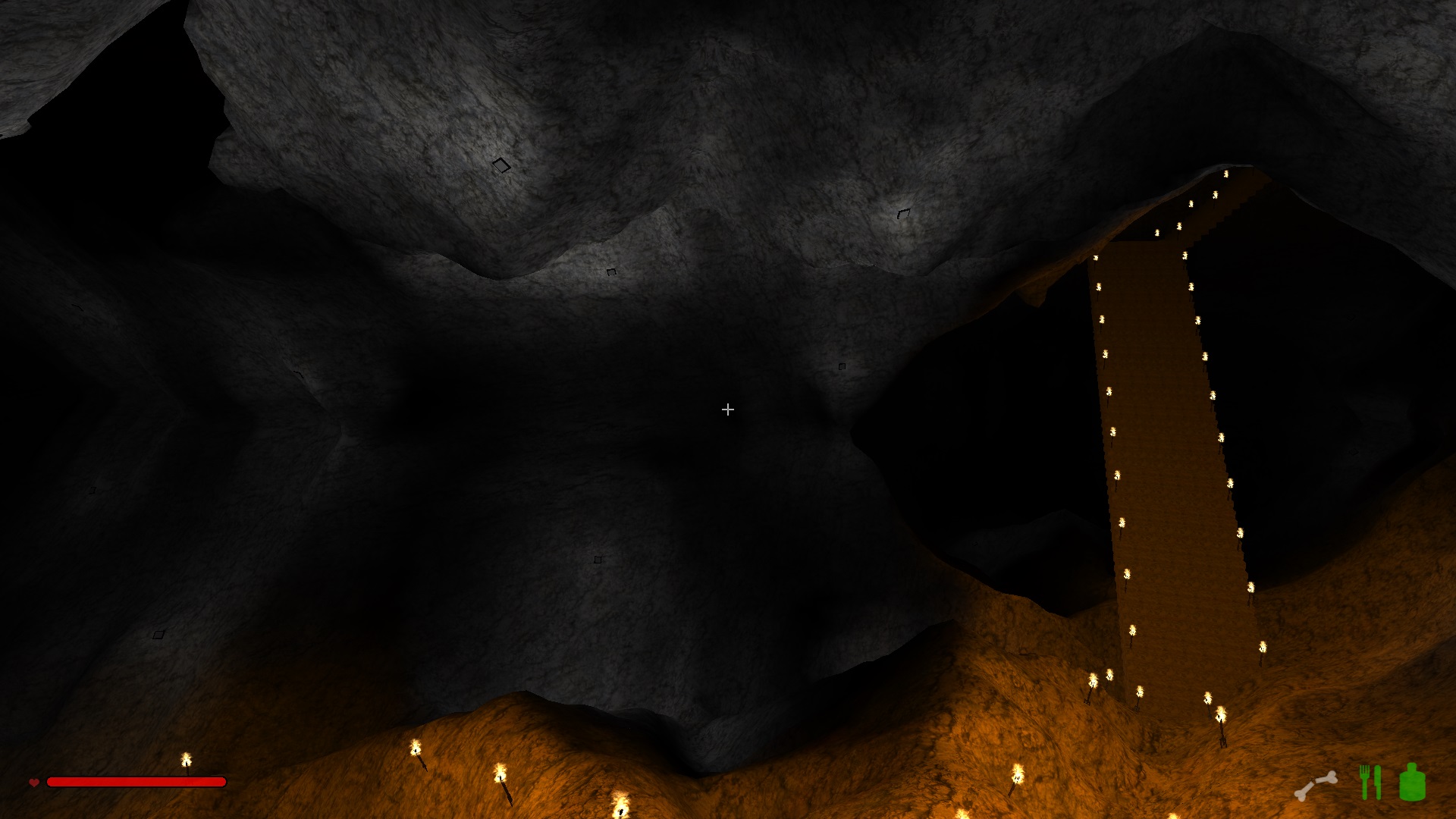 Im oberen Drittel hab ich mich noch ganz herkömlich einfach durch den Fels gehauen und ab der ersten Kaverne bin ich dazu übergegangen Treppen zu bauen, weil die einfach schneller nach unten führen.