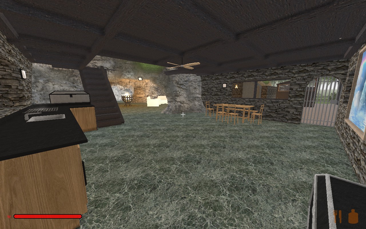 durch das Wohnzimmer kommt mann in die klein mine.