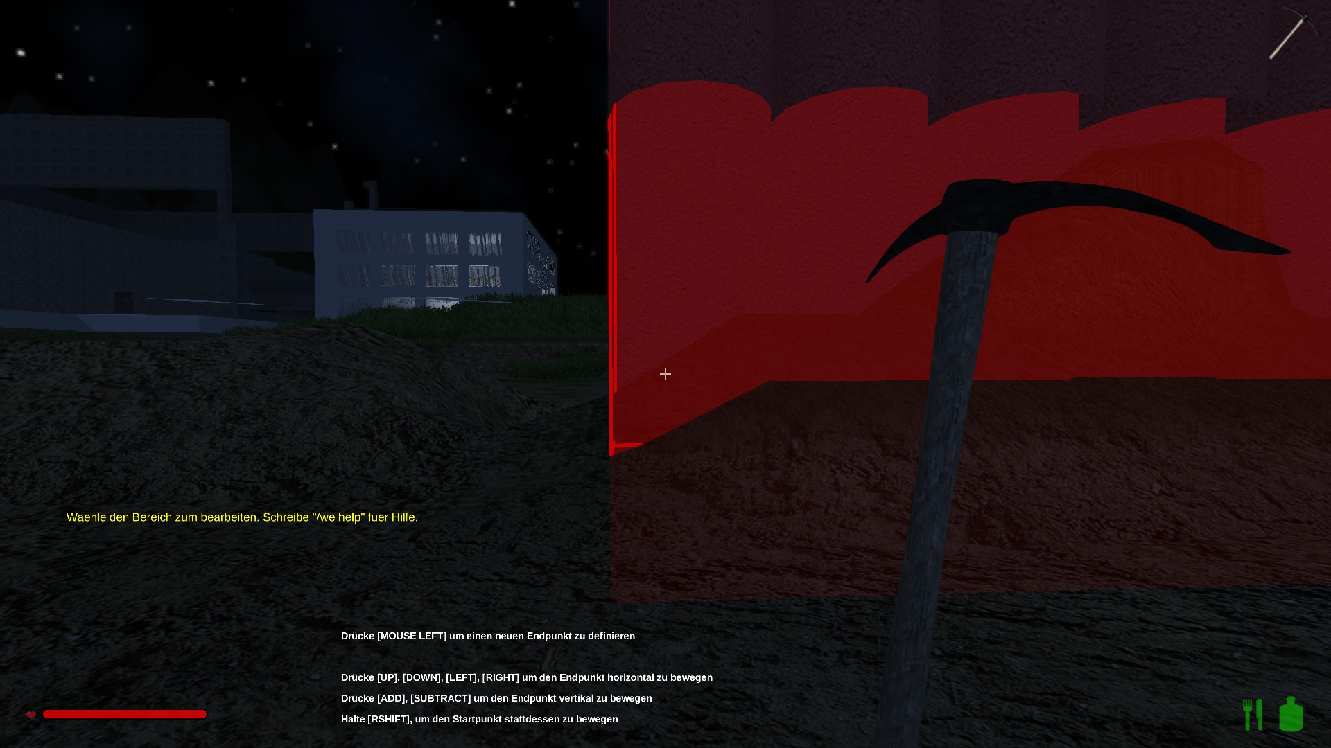 Die ganze Fläche darunter habe ich mit WorledEdit entfernt (also ca. 13 Blöcke),