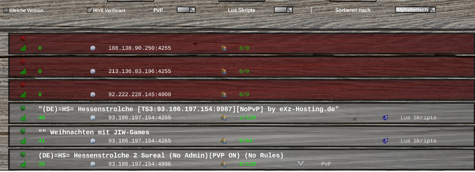 Wie äußert sich das genau? Wird der Server rot in der Liste angezeigt?