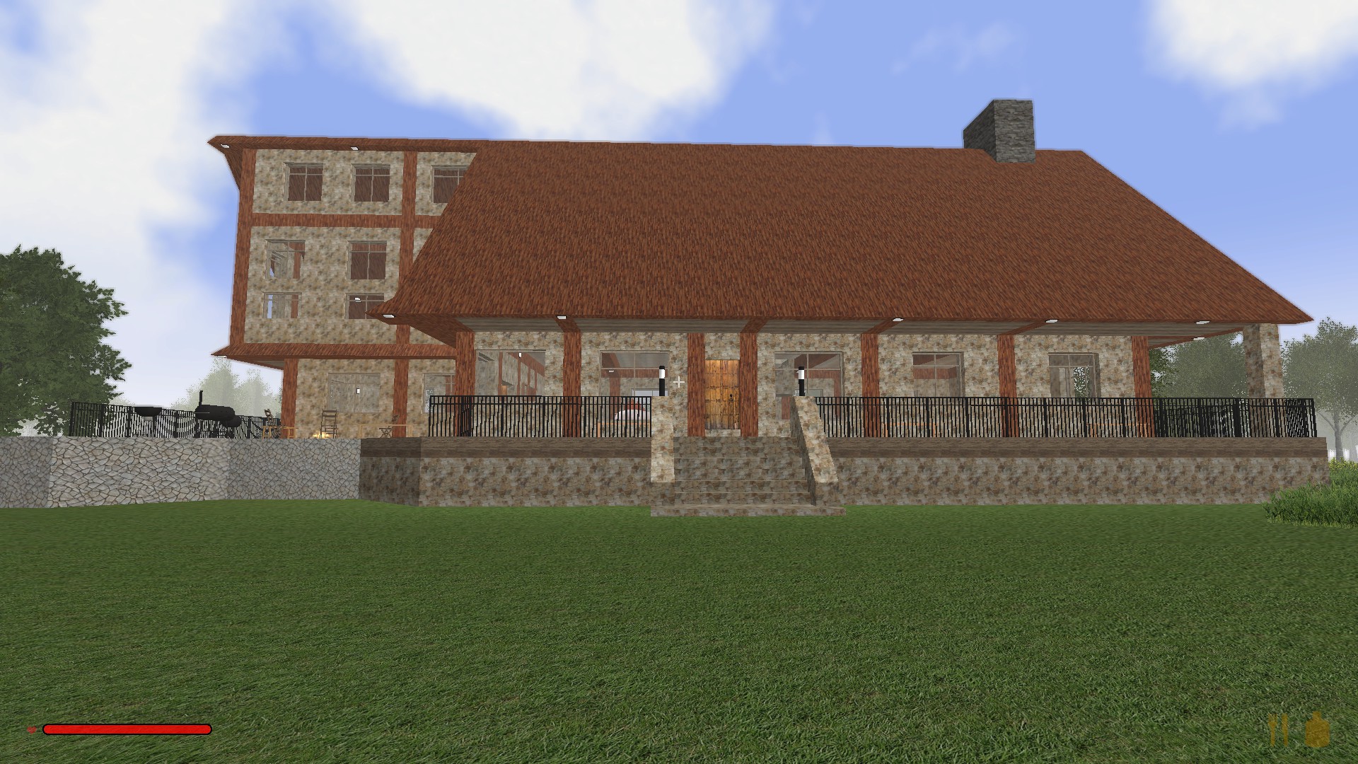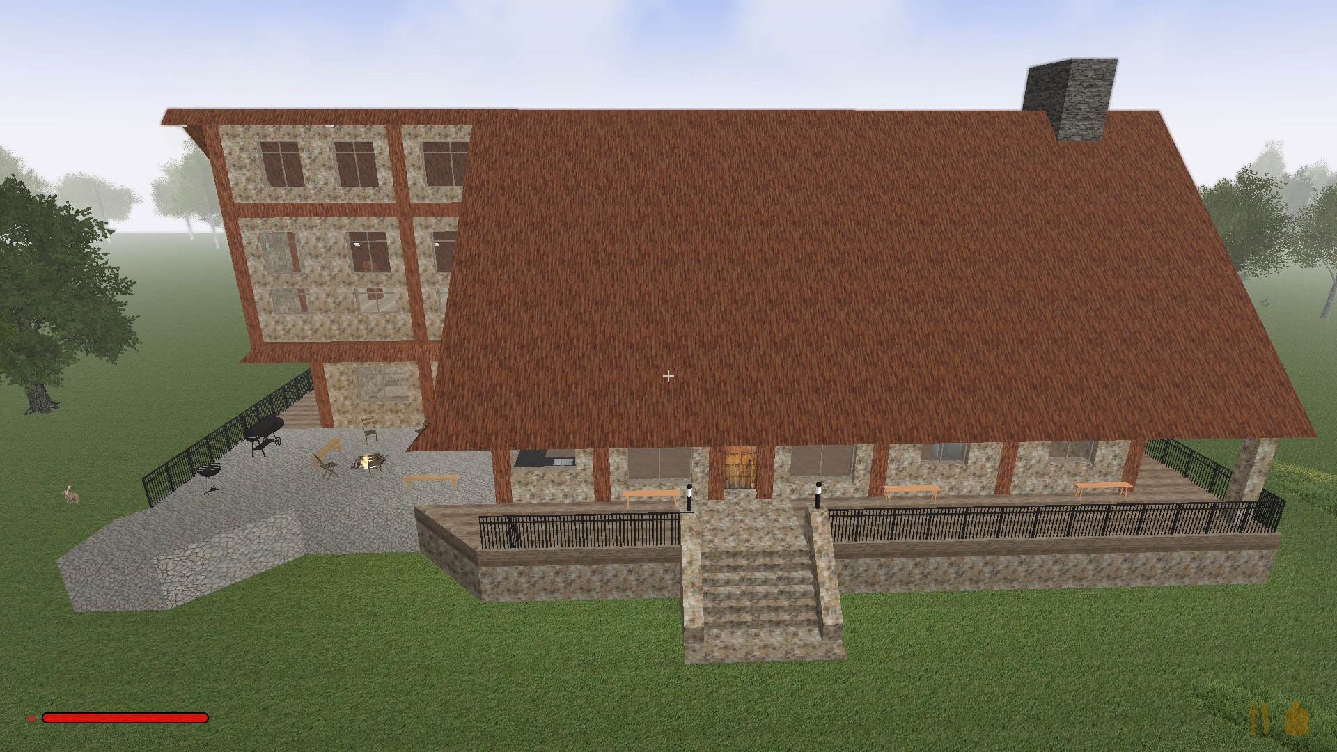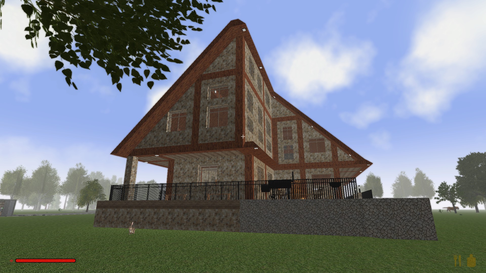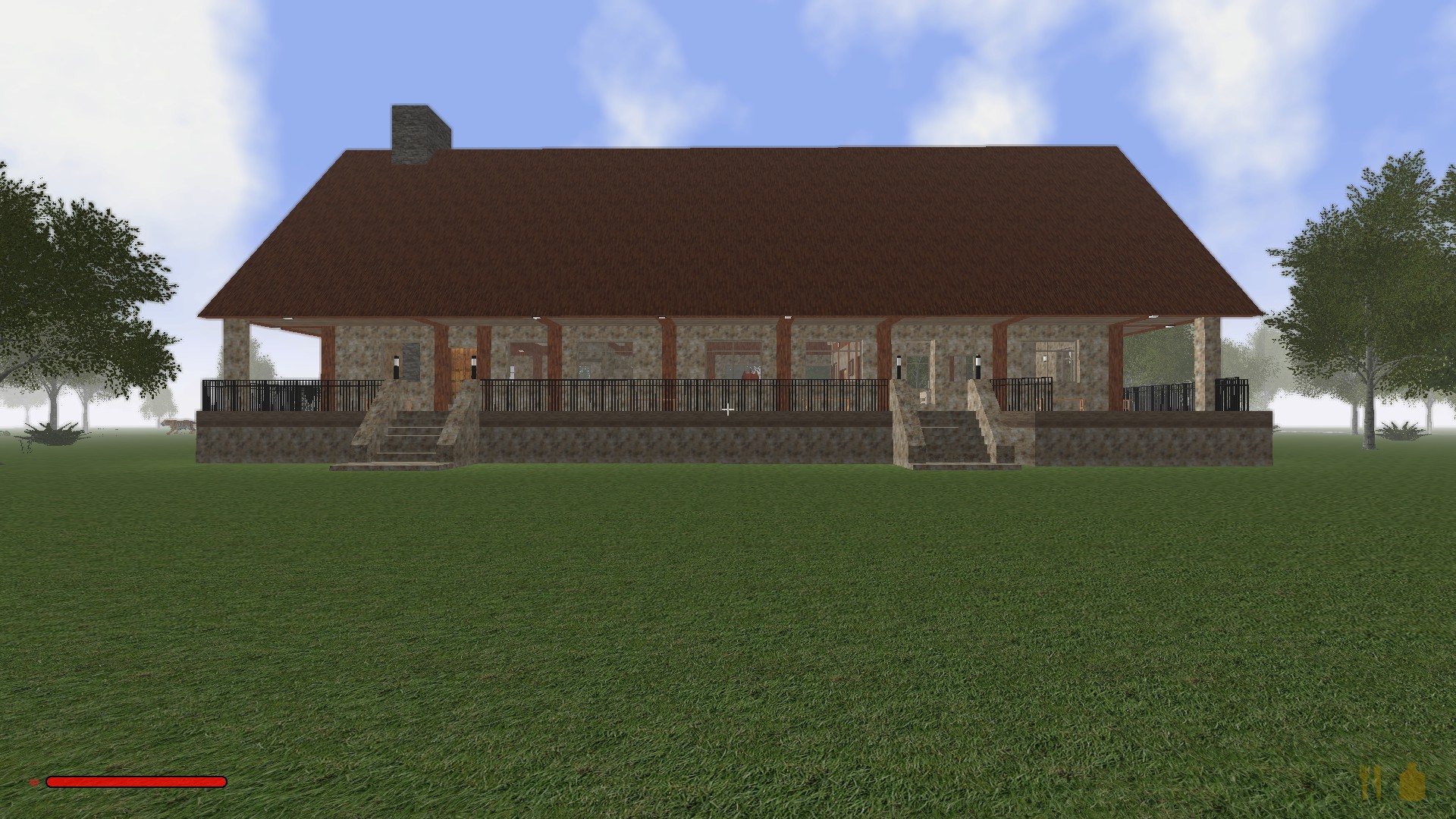 This beautiful stone hunting lodge comes equipped with a large kitchen area, dining area with large stone table, and sitting fit for kings. The loft contains 1 large bedroom and bath, and plenty of room to add more beds and maybe a game room. The large stone fireplace has provisions for open flame cooking that will give any food that "outdoor" taste. There is also a well stocked workshop. Wrap around porch with stone patio with seating. You can enjoy all this for the mere cost of the time it takes to install in your "Rising World".