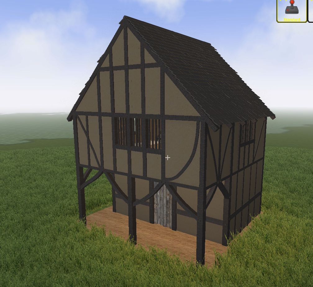 Nach den zahlreichen Anregungen hier im Forum habe ich mich selbst einmal außerhalb der Blockwelt versucht. Es regnet vielleicht an der ein oder anderen Stelle durch das Dach und als Boden taugt, der Authentizität wegen, auch nur gestampfter Lehm. Das etwas abgerissene Aussehen ist aber auch gewollt (wenn auch nicht unbedingt gekonnt). Wenn gewünscht reiche ich die einzelne Bauteile, hier insbesondere die nicht der DIN entsprechenden Verstrebungen und 1/3 einer Dachfläche nach.