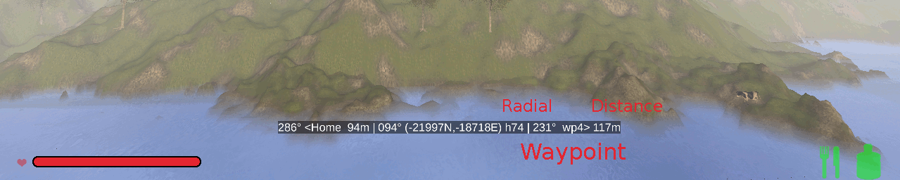 *) If the player changes of heading without actually moving, particularly while flying, RW does not always notify the script which cannot update the displayed heading. The heading is updated as soon as the player moves.