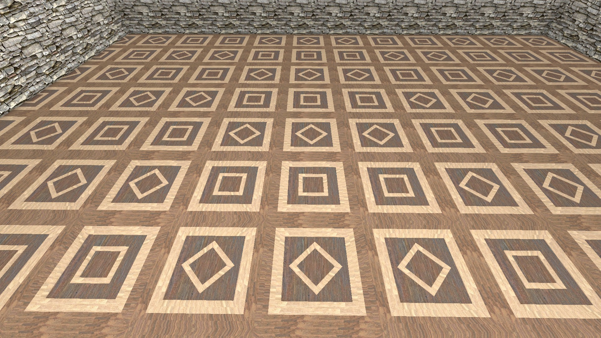 Hier mal mein Holzfußboden. Da er aus einzelnen Teilen zusammengesetzt ist, kann er beliebig verkleinert oder vergrößert werden