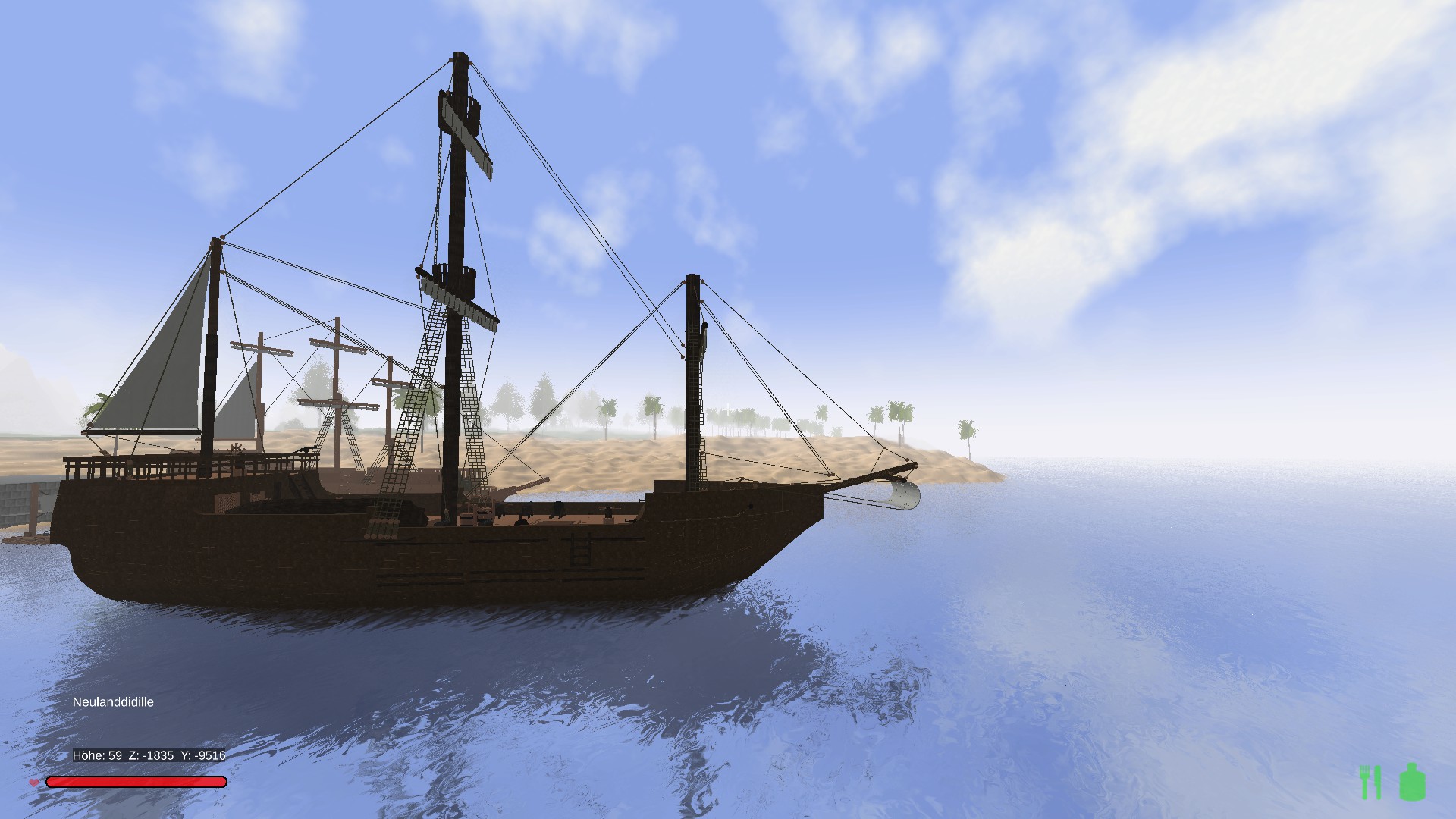 Am 26.12.1492 schrieb Kolumbus in das Logbuch "die Santa Maria ist ein schwerfälliges Schiff und nicht richtig geeignet für Entdeckungsfahrten " Das Schiff hatte 3 Masten und 5 Segel. Heute wird noch gestritten ob es sich um eine Karacke oder um eine Karavelle gehandelt hat. Aber 39 Mann Besatzung Sprecher aber eher für eine Karacke. Obwohl die Verpflegung nur aus Pökelfleisch, Sardinen, Mehl, Linsen, Bohnen, Olivenöl, Rum und Wein bestand ist keiner erkrankt. Mittags gab es ein warmes Mittagessen, welches an Deck zubereitet wurde. Es wurde eine dicke Sandschicht an Deck aufgeschüttet, darauf wurden Steine gelegt und auf den Steinen wurde Feuer gemacht, dann konnte darauf der Kochtopf gestellt werden. Wärend der gesamten Fahrten hat Kolumbus keinen einzigen Mann verloren.