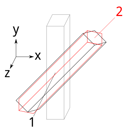 1) rotate the object around its Z axis by, say, 45° (black outline)