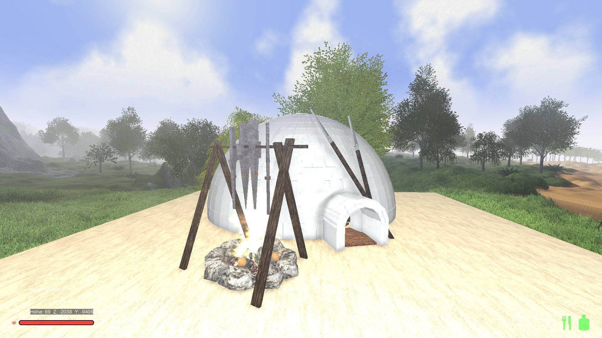 Da wir ja auch Spieler haben die ihr Grundstück in der Schneeregion haben, habe ich die entsprechende Behausung dazu gebastelt und auch noch gleich einige Fische gefangen und über das Feuer gehangen.