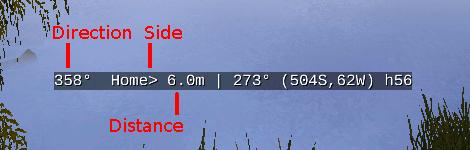 *) If the player changes of heading without actually moving, particularly while flying, RW does not always notify the script which cannot update the displayed heading. This depends upon RW and there is nothing I can do about. The heading is updated as soon as the player moves.