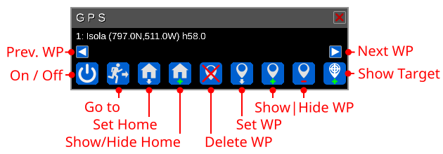 which allows to turn the GSP on/off, to set the Home and each way-point, to show/hide them. The GUI adapts itself to the current GSP status.