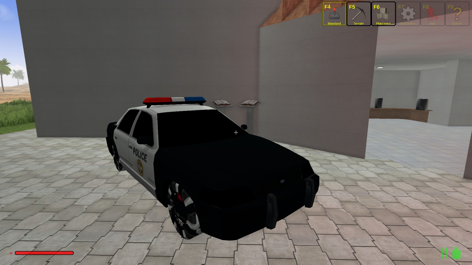 To get a car at your position type '/car [type]' in the chat, where [type] means a type of cars. I allready added two cars in this version: a Lexus and a Police car(the models are from tf3dm.com). To list all cars installed type '/car list'. If you want to see all commands the are possible type '/car help'.