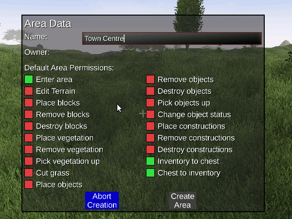 • there isn't one yet, this is a work in progress (WIP). You can download the area protection script though from the scripts section of this forum.