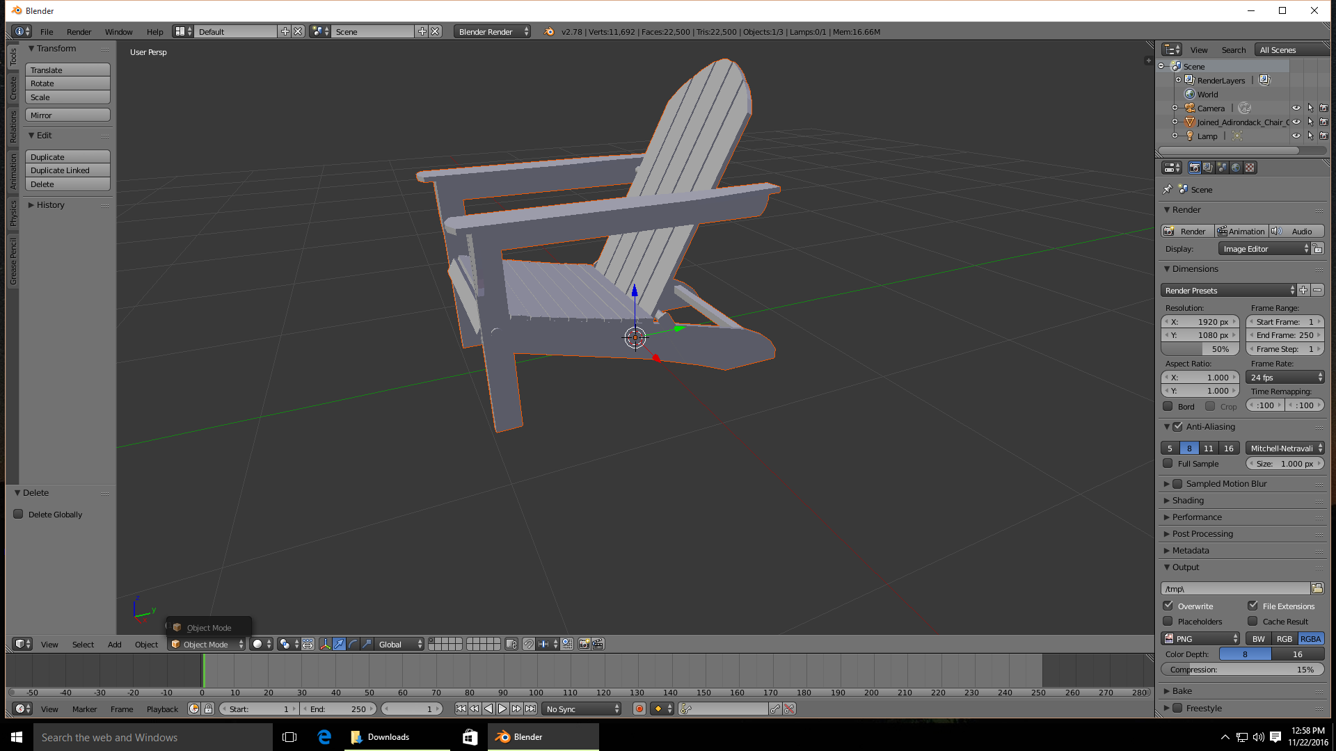 If the chair is splited in multiple objects, you can unite them by selecting all and pressing ctrl+j