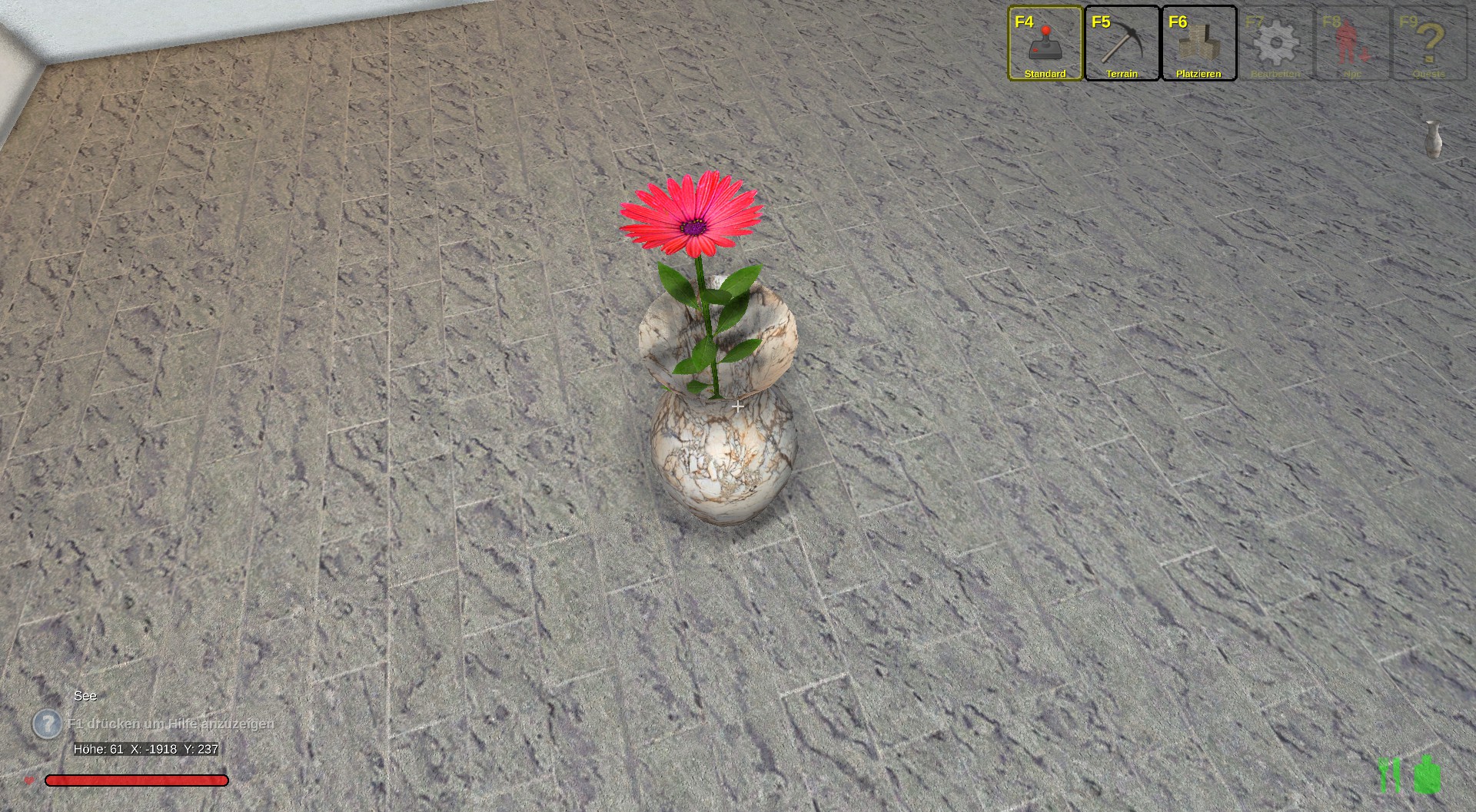 Klappt auch mit den Vasen. Halblock setzen, Blumen darauf weghauen, Vase darüber. Toll.