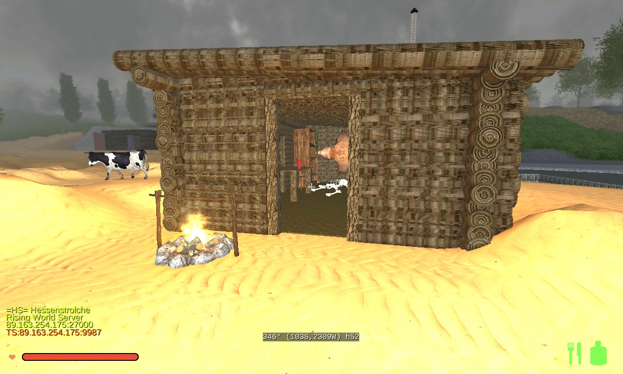Das alte Blockhaus mit dem Grasdach,ist ein Teil der Geschichte von Fort Selkirk. Dann wurde in der Gegend das Yukon Gold gefunden, überall in dieser Gegend sind die Überbleibsel noch zu sehen. Der Goldsucher befindet sich noch im Blockhaus, kann aber mit der Taste F entfernt werden. ![]()