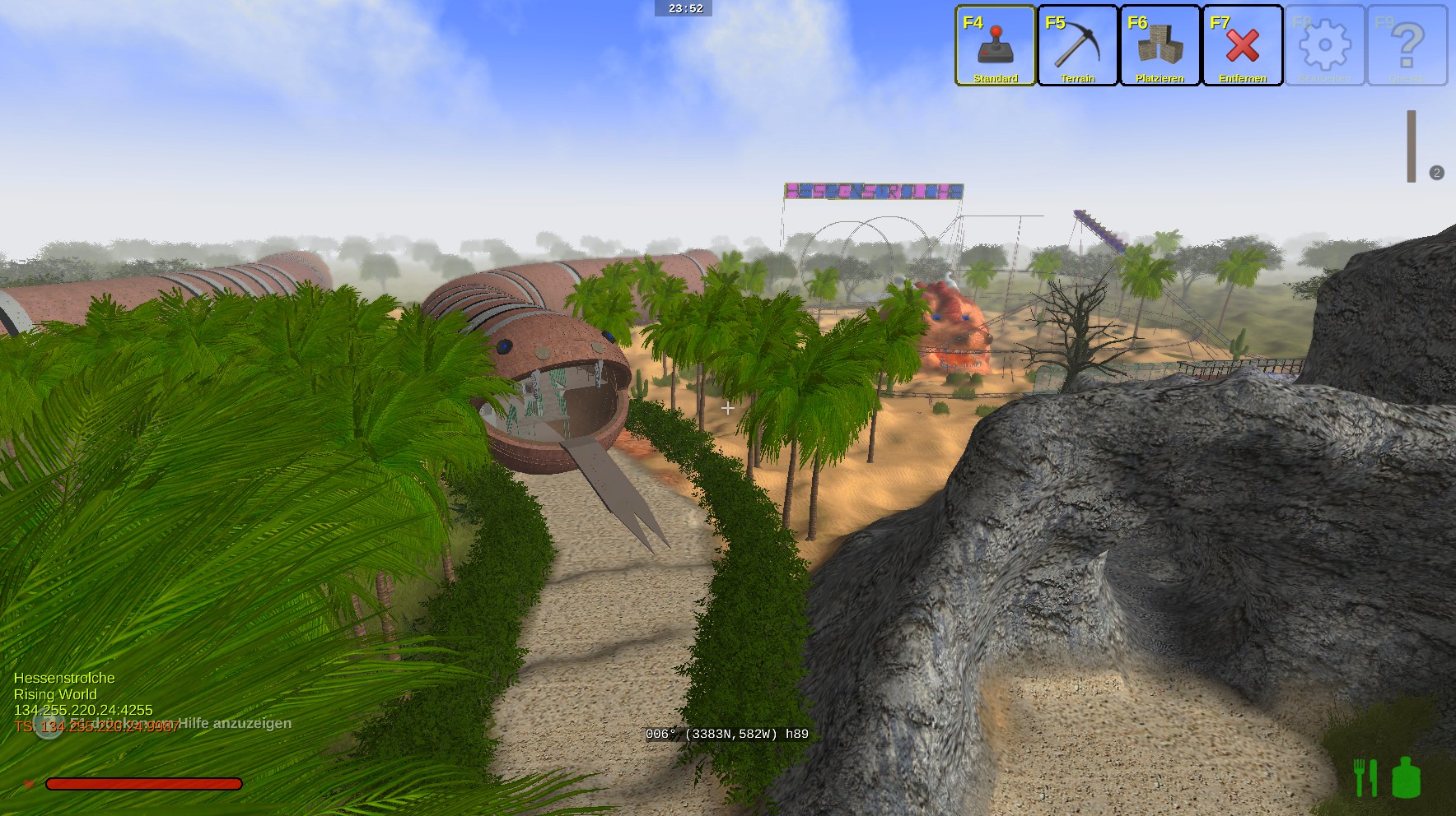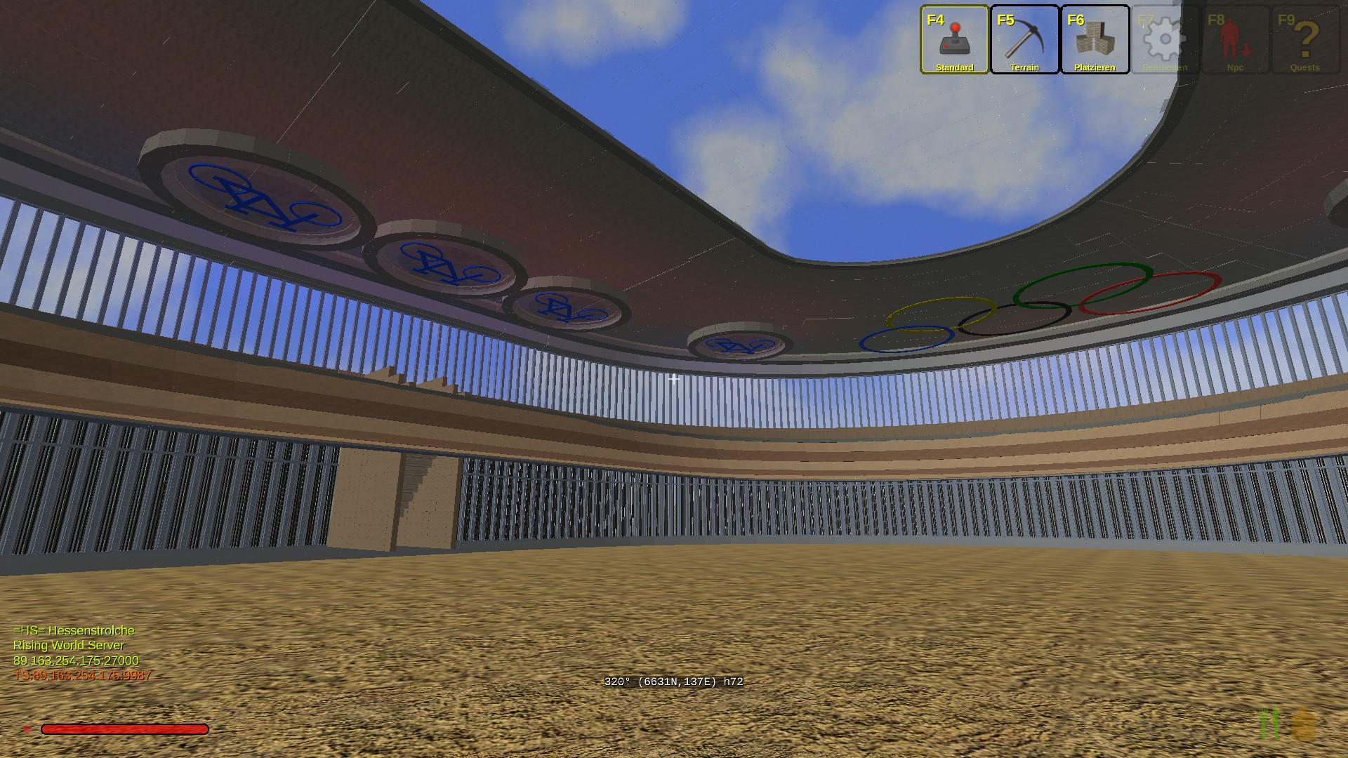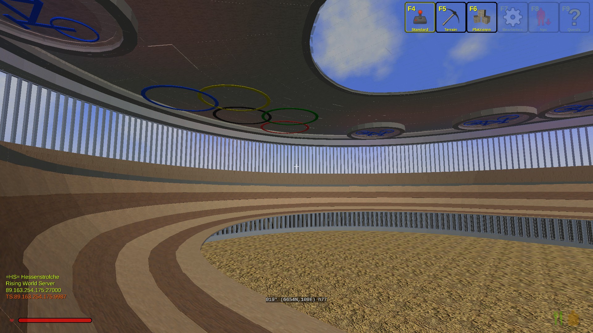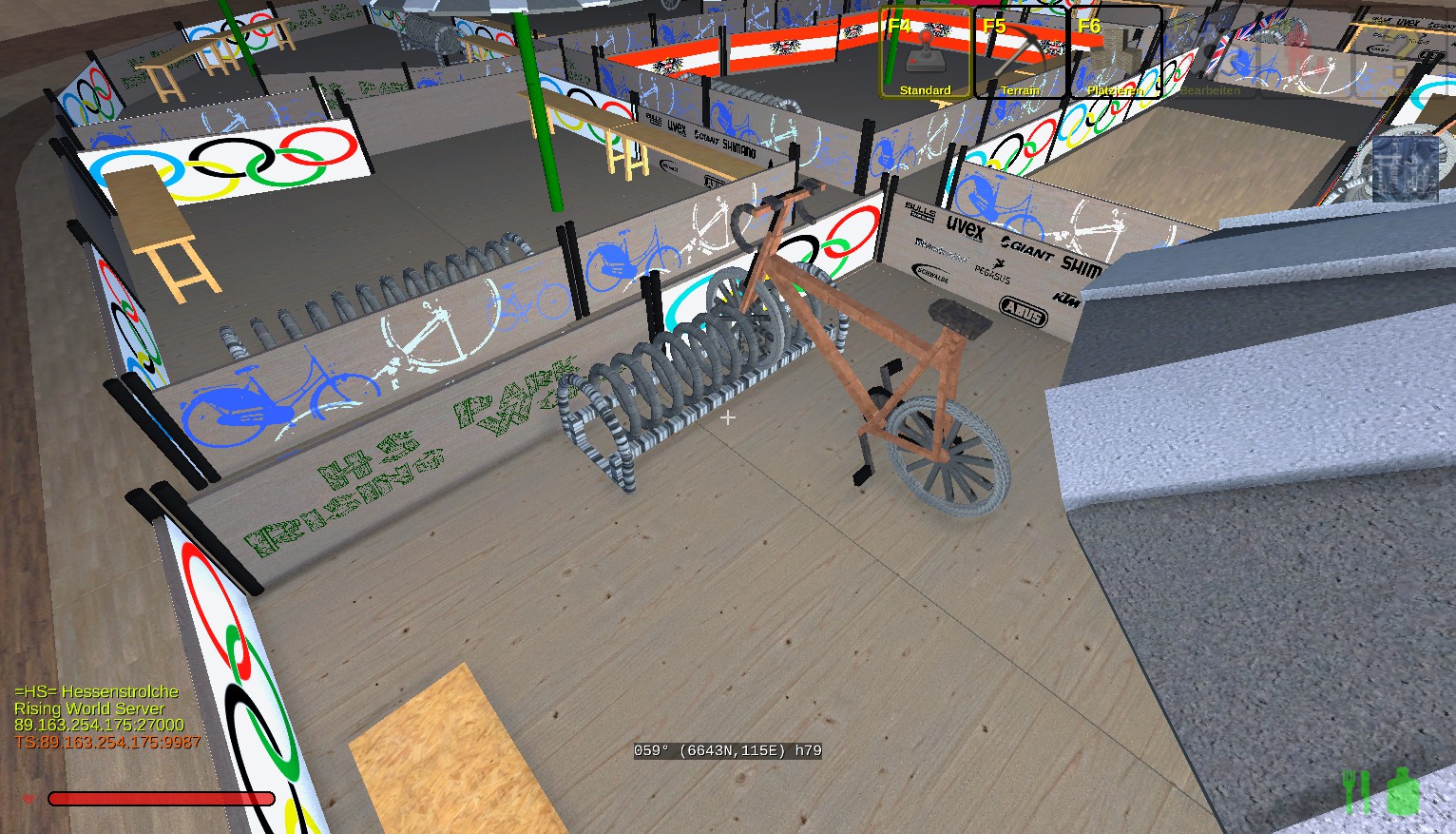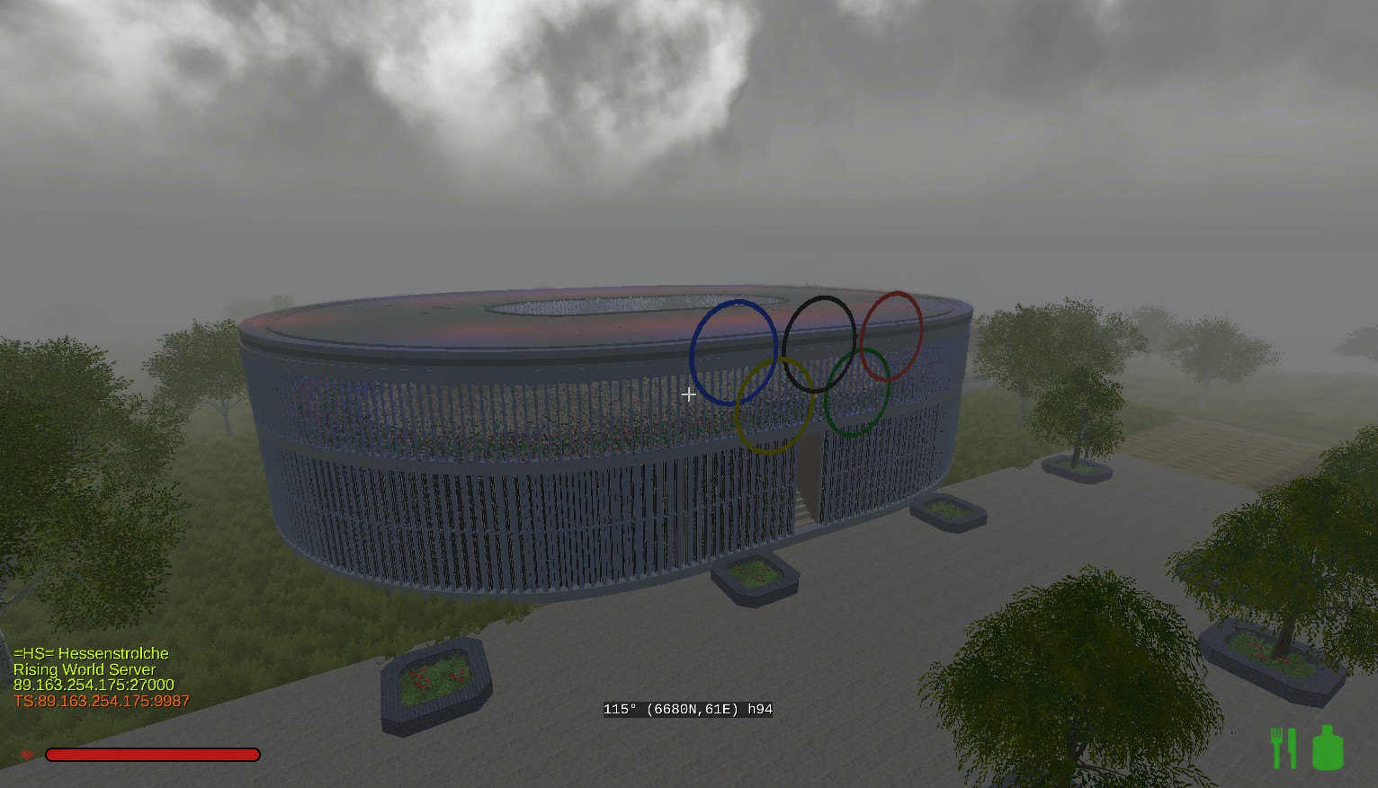 Das Gebäude hat innen 2 Stockwerke und insgesammt gut 100000 Bauelemente bis heute verbraucht. Einiges an der Natur muss noch gemacht werden. Unser HS-Park ist in der Nähe vom Teleport "Tempel" für Neugierige. -