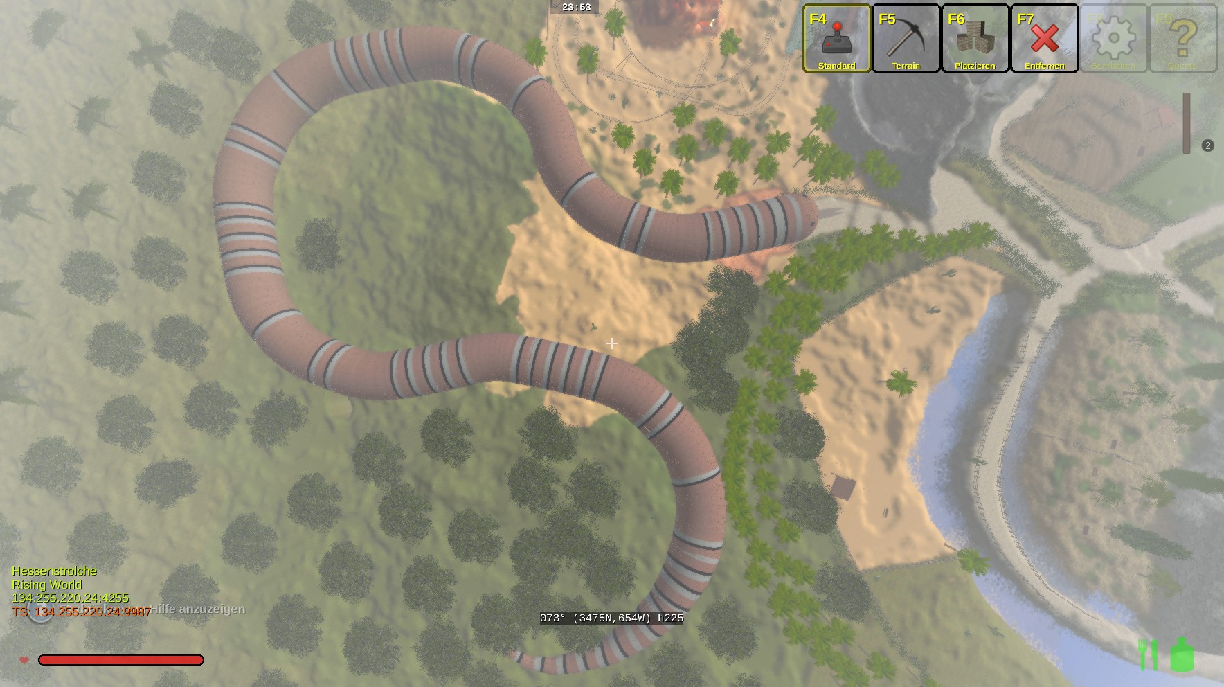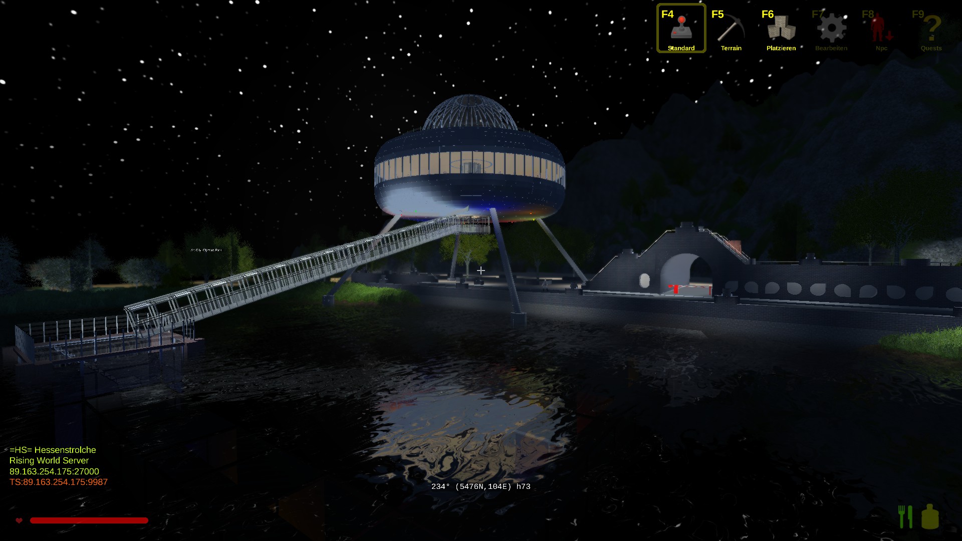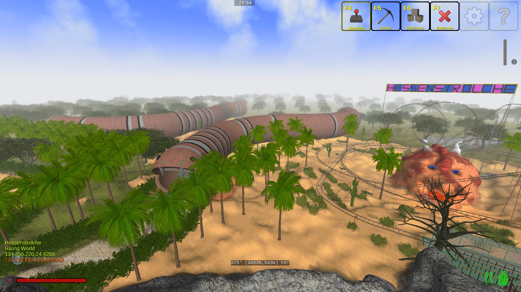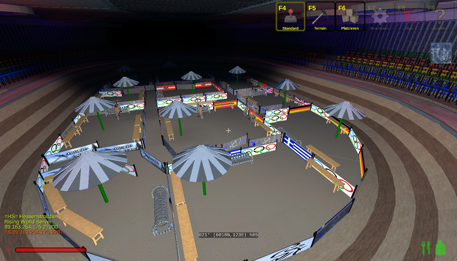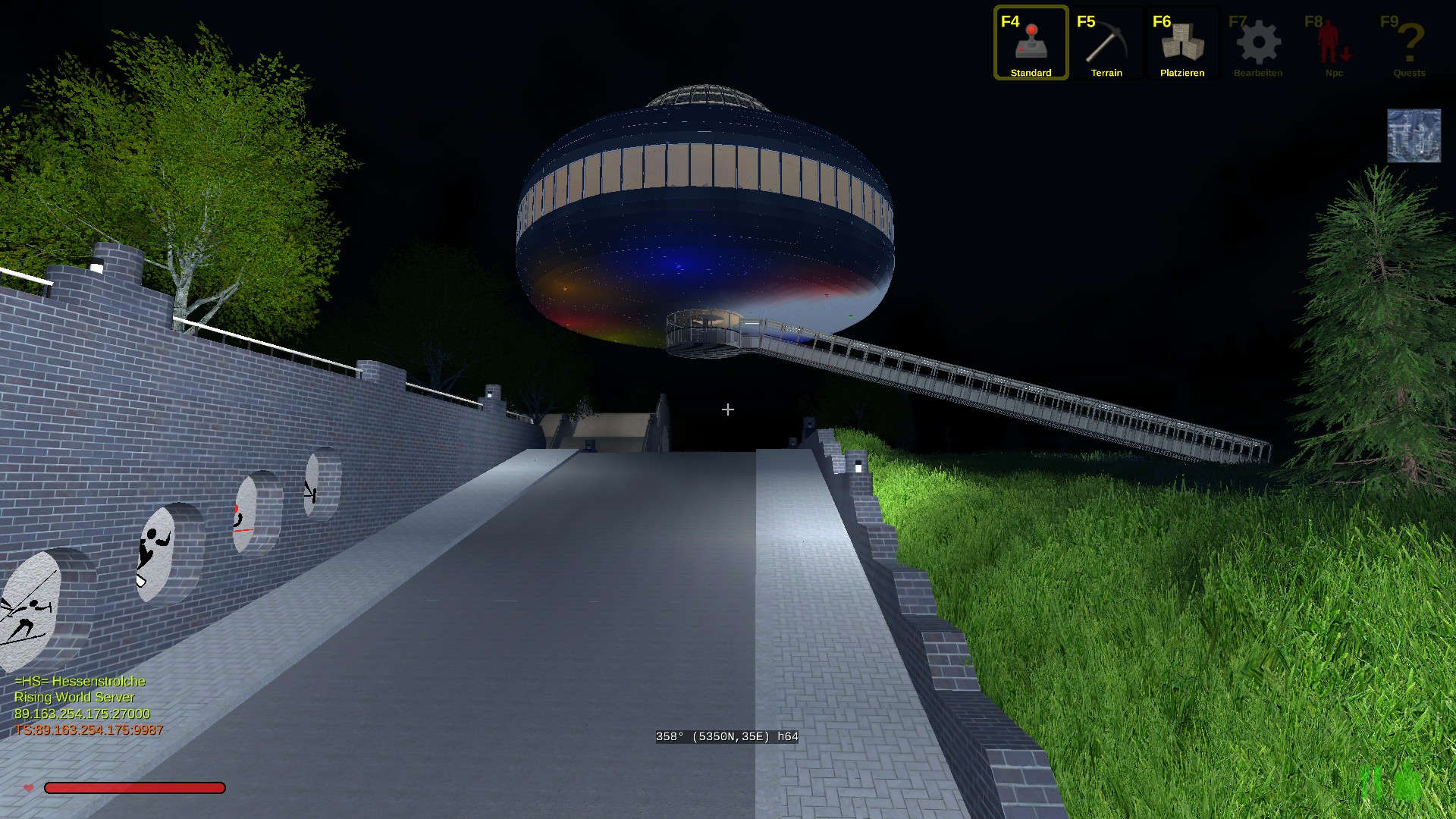 Das Gebäude hat innen 2 Stockwerke und insgesammt gut 100000 Bauelemente bis heute verbraucht. Einiges an der Natur muss noch gemacht werden. Unser HS-Park ist in der Nähe vom Teleport "Tempel" für Neugierige. -