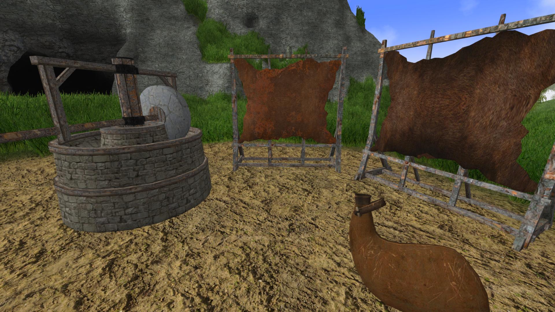 Hey folks! A new update is available now, it introduces some new items and especially new crafting stations: a grinding station, a tanning rack and a spinning wheel. These are fully interactive crafting stations, i.e. there is no GUI, so you interact with them directly (like the smelting furnace).