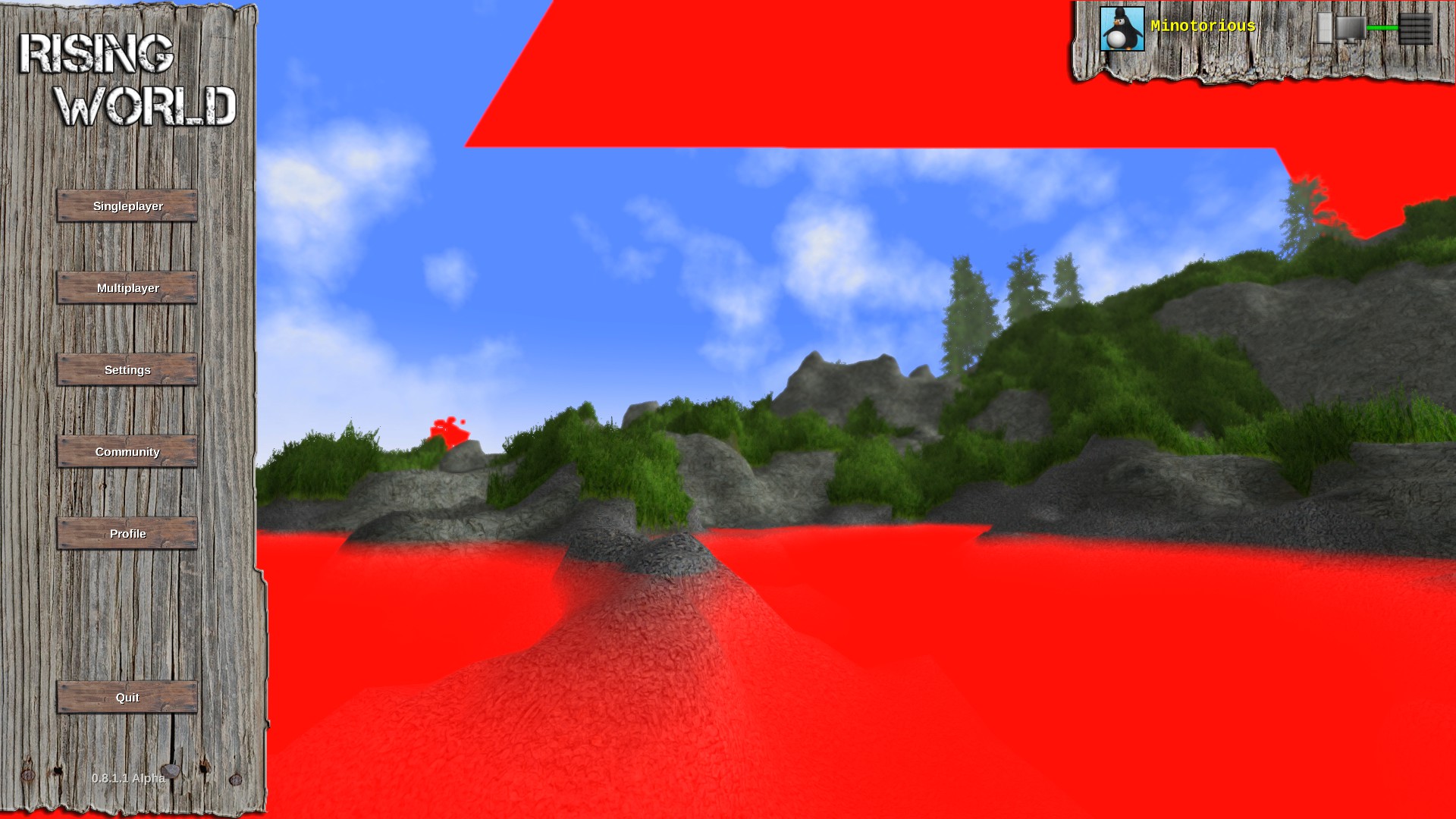 Hmm... no, it's definitely not intended to be a joke Looks like the water textures aren't loaded properly (although I'm wondering about the red thing in the sky) Does it happen everytime you load the game (or at least every time you get a background scene which contains water)?
