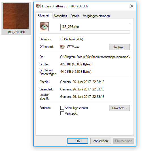 Das Bild speichern wir im Format d3d/dds als dxt1 rgb 4 bpp / no alpha (ich habe das Nvidia Tool das es für Photoshop usw. kostenlos gibt.,