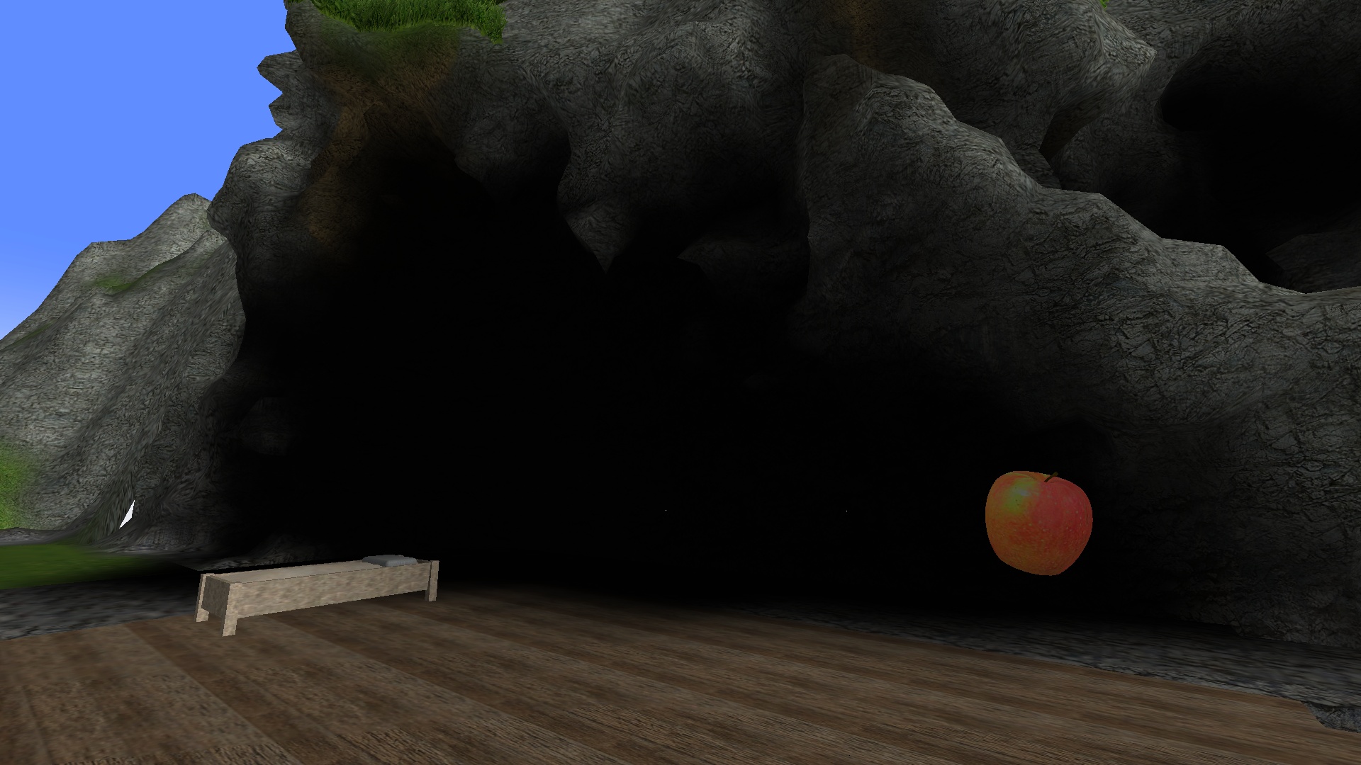 Leider wird das Sonnenlicht nur senkrecht von oben nach unten berechnet. In deinem Fall wird das Sonnenlicht von der darüberliegenden Landmasse blockiert, wodurch der Bereich unterhalb des Überhangs unbleuchtet bleibt. Eine Lösung wäre (abgesehen davon, den Bereich auszuleuchten), den Überhang zu entfernen. Leider wäre das momentan die einzige Option, zwar wird die Berechnung des Sonnenlichts in Zukunft womöglich noch angepasst, aber wenn, dann wohl erst zu einem sehr viel späteren Zeitpunkt