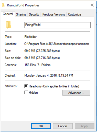 I looked in the properties for rising world and i cant find local files in there, i dont know if im doing anything wrong or not.