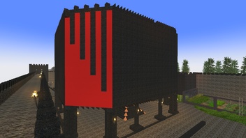 The large black and red building is the Keep with front, side and bottom view-which is the entry.