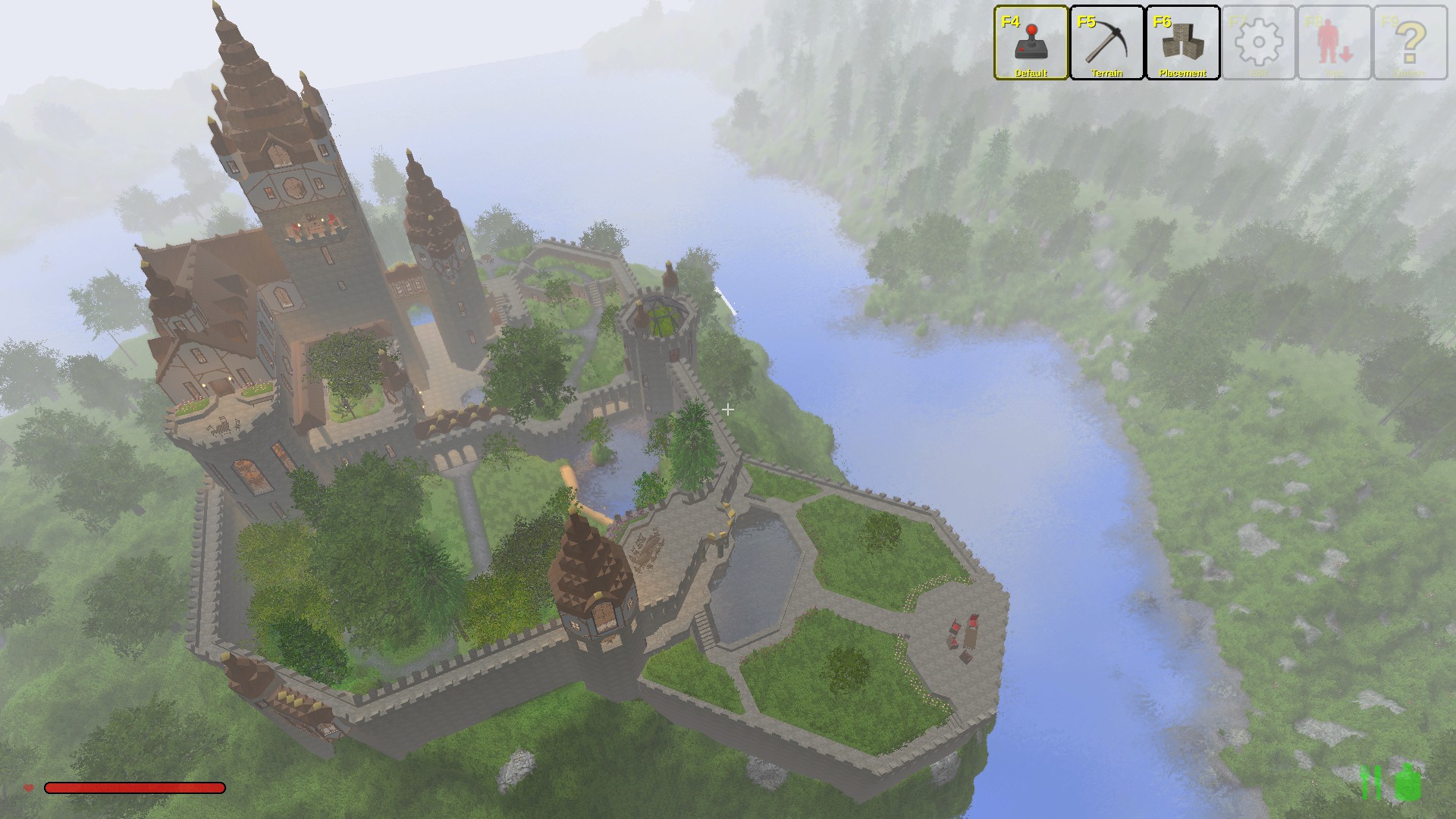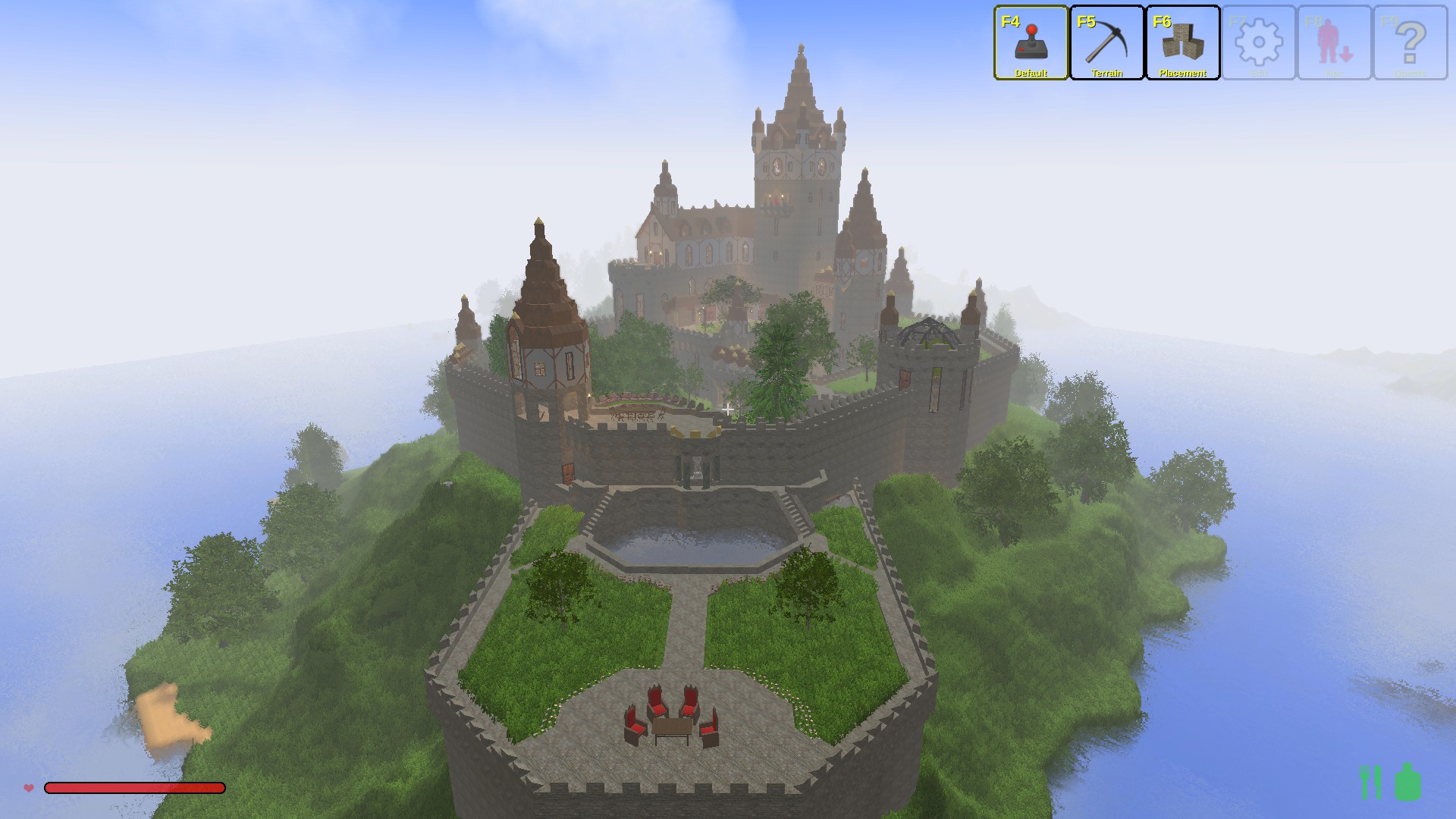 This is a castle that i've been working on for some time. I've used over a 100.000 blocks, and it's fully decorated. The tower rises nine stories up from the ground floor, it has over fifty rooms, and it has a huge dungeon that extends three stories underground. it also has a very atmospheric garden.