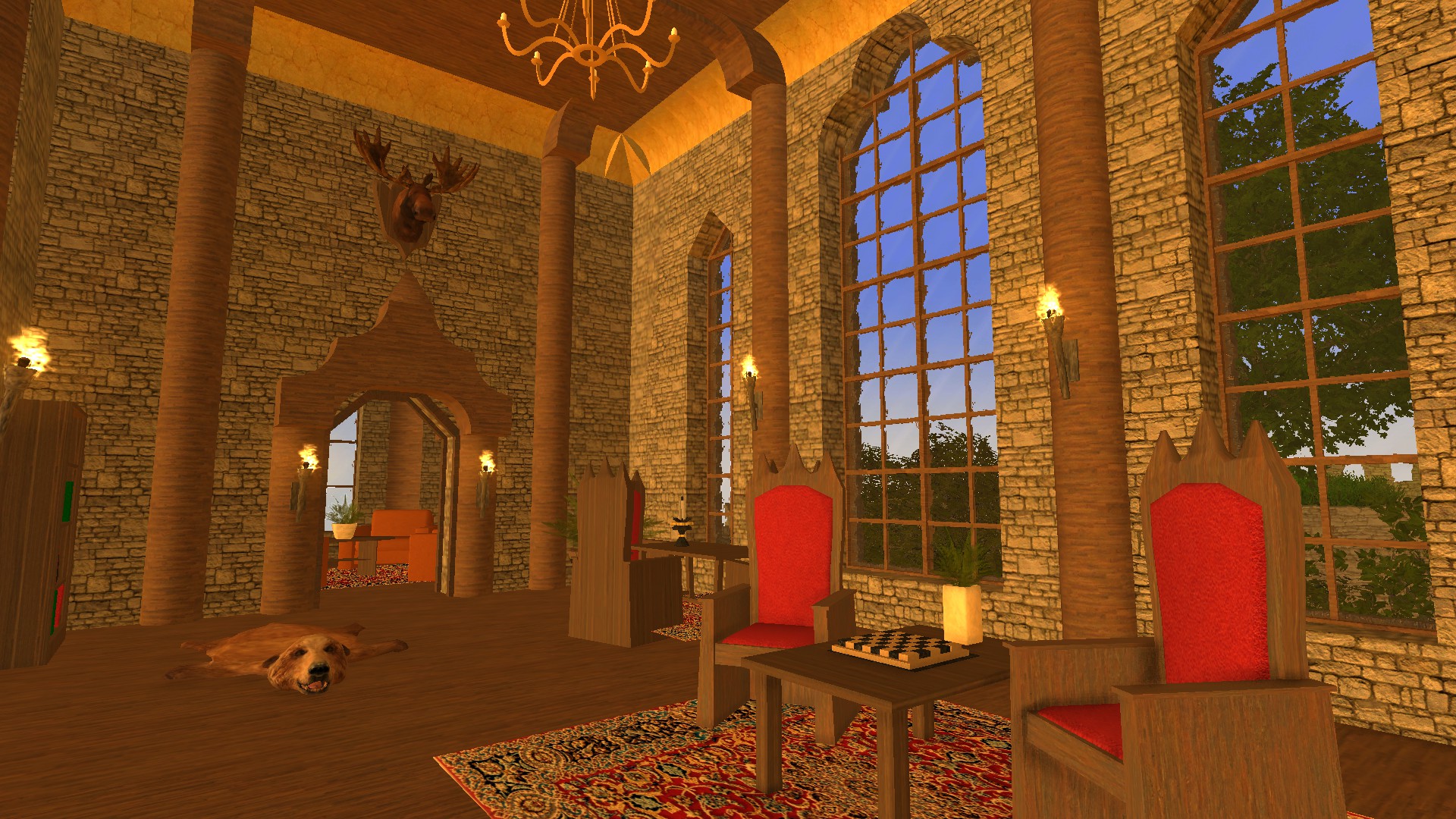 But not even the high walls could keep the Duke and his family safe. Eventually, 10 years after the castle was build, a servant was bribed by a deserter named the Black Baron. The servant told him the entrance to one of the estate's secret tunnels. The Black Baron ordered his men to enter the tunnel in the dead of night.They surprised the guards and killed the Duke and his family. The Black Baron made the estate his new fortress, and as he was a cruel man, he build a torture chamber deep within the castle dungeons, Where many of his enemies drew their last breath. Since then the castle has been passed on or conquerred many times, but it has always been well maintained. As of today, the castle is in possession of a pensioned painter, and he has renovated the castle with modern sanitary utilities. Because of his love for history, he has kept most of the castle as it was in the old days.