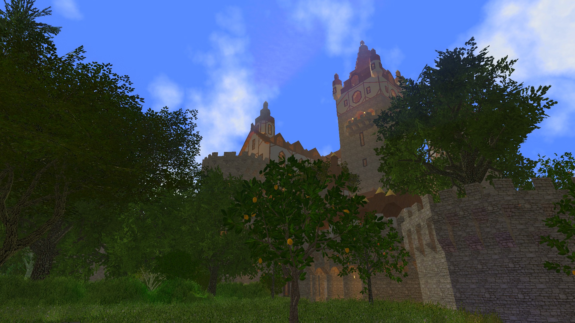 Long ago this castle had been ordered build by a duke of the local lands. Duke Almgard was a rich man, and loved luxury and quality. as he liked to walk through the woods to think and ponder, he ordered an elaborate garden build around the castle, in which he could lounge and entertain his guests. But the Duke had many enemies, and the land was rich with bandits and deserters. To protect himself and his family, he build a high wall around the entire estate, not only as protection, but also as a display of his family's vast wealth.