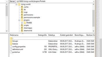 Ich hatte das Portal Plugin runtergeladen und mit einem FTP Programm einen Plugins Ordner im Order Rising Wold erstellt. Darin dann die entpackten Dateien aus dem Portal Download reingepackt. Server neu gestartet. Im Spiel ^reloadplugins. Es kam Plugins geladen. Im Chatfenster (t) dann diverse Befehle /select portal eingegeben. Aber es passiert einfach nichts. Habe ich das Plugin überhaupt richtig installiert?