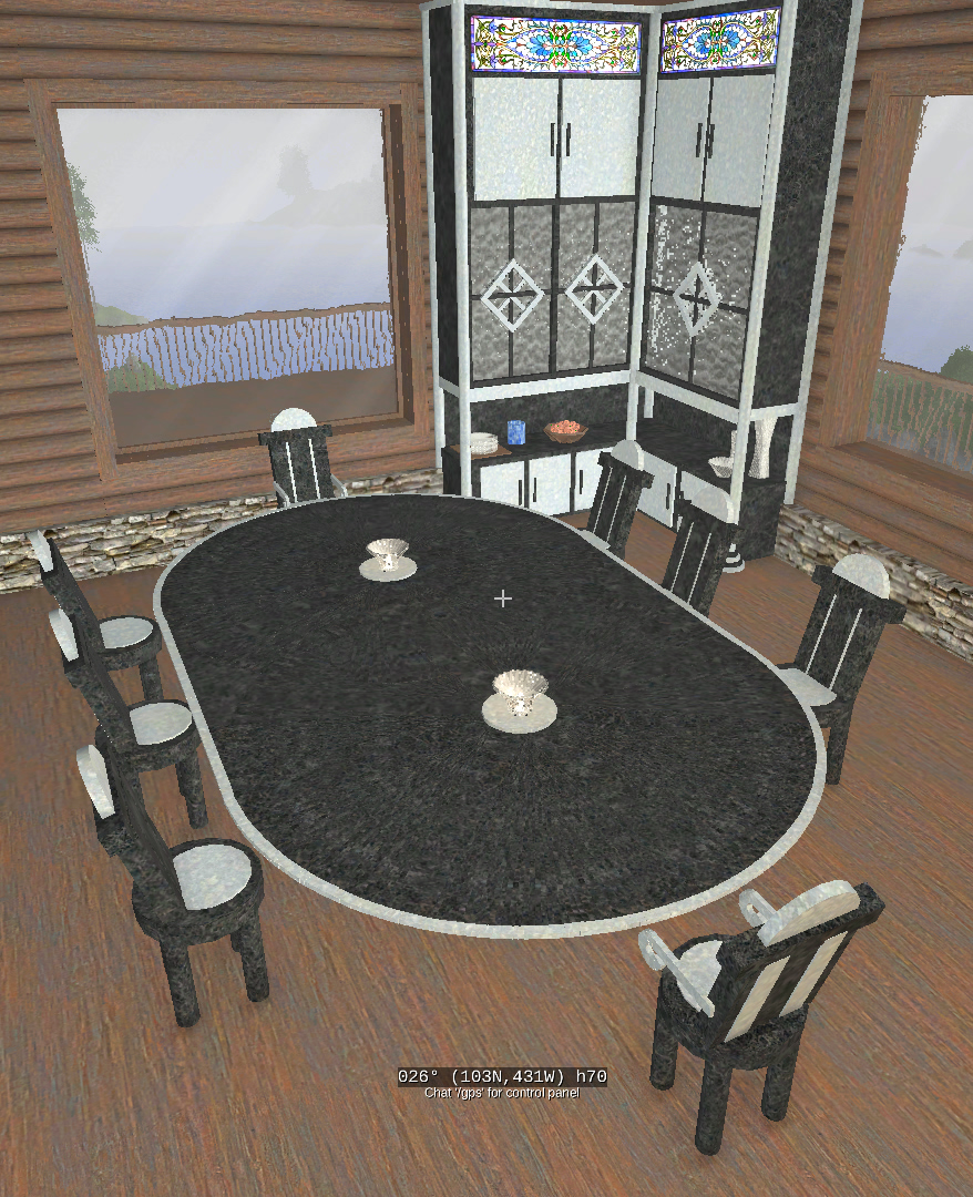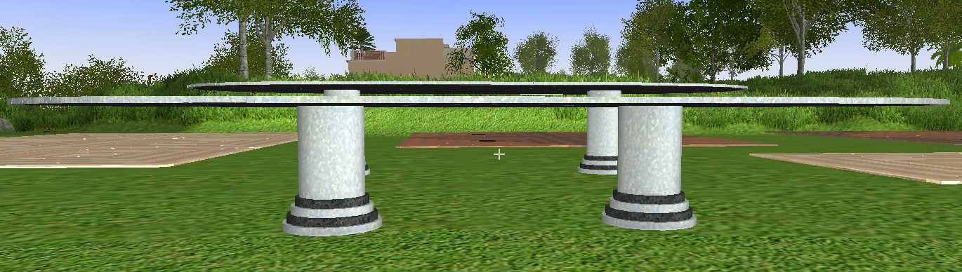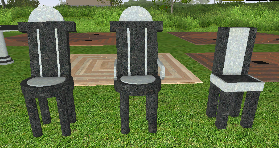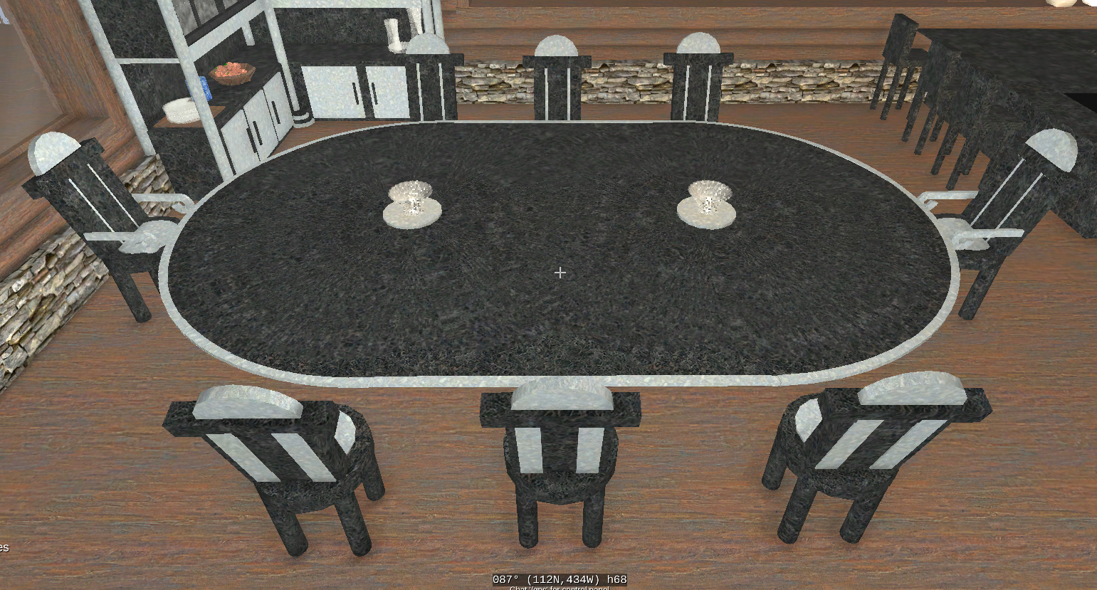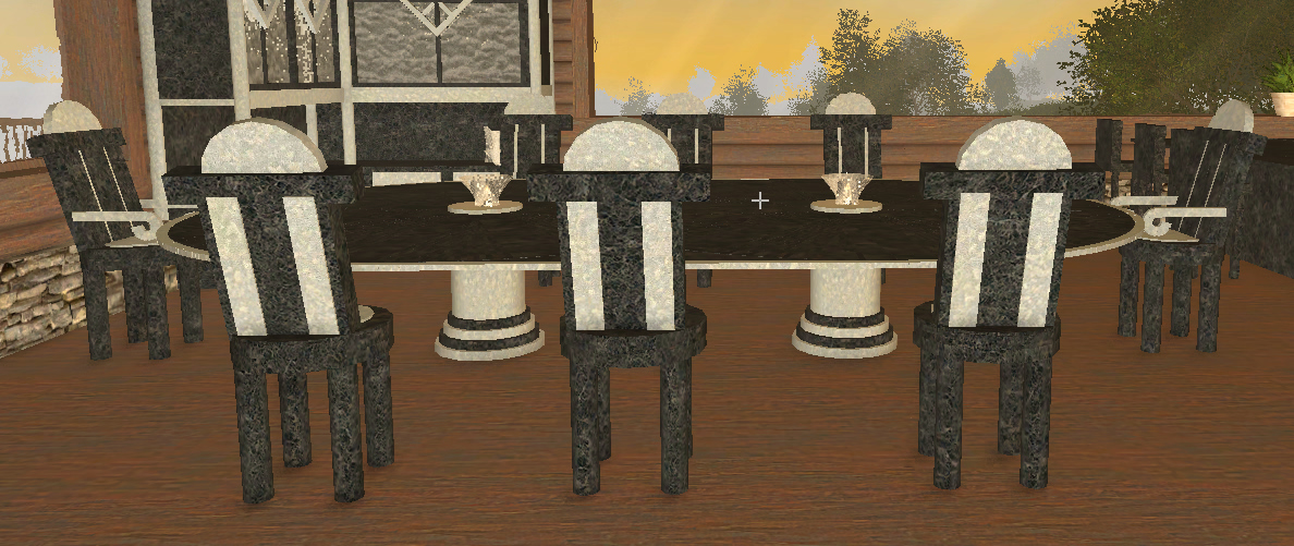 Okay, here are a couple of tables and some chairs I made to go with them. Just an FYI, the larger table is also taller than the smaller table. The chairs were made to work with the smaller table but should (hopefully) still be usable with the larger table. Also, the chairs have an in game chair inside of them so that you can sit on them. I ended up not using one of the chair designs but wanted to give others the choice.