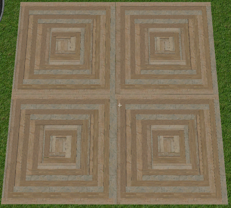 Each single panel is 6 x 6 blocks. I included a blueprint for each single panel and for a group of 4 panels. With the Triangles panel I have photos showing both dark and light center. I have used these as both flooring and as a ceiling. Have now added bp's with a block on each corner to help in placement.