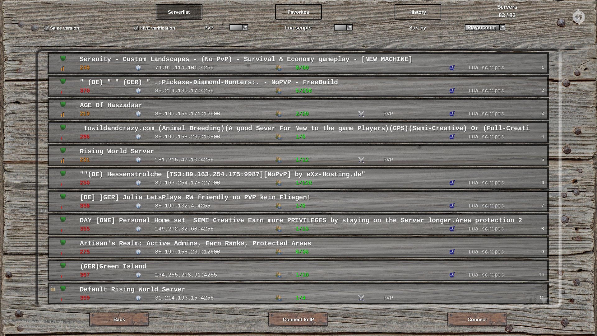Edit to add: Just remembered that I was auto kicked last I tried to connect to them, but that was probably because I didn't have a proper rising world account and the creation process was bypassed on game start up. I'll try again.
