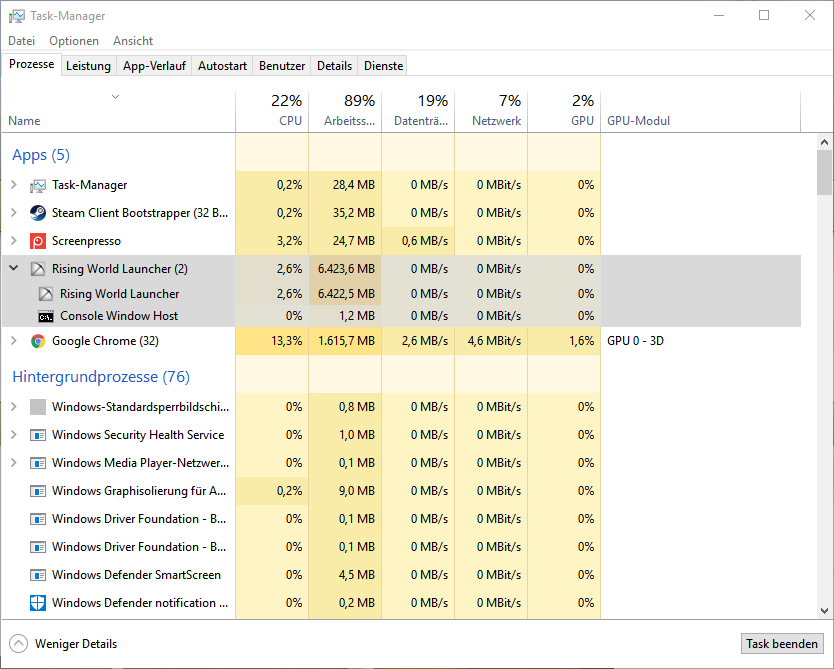• Laut dem neuen Update sollte ja der Arbeitsspeicherverbrauch verringert worden sein. Bei mir aber bleibt das Spiel ab und zu stehen, weil genau das Gegenteil das Problem ist. Ich habe 12GB RAM und trotz des Browsers da nie Probleme mit Spielen, auch nicht mit Rising World gehabt.