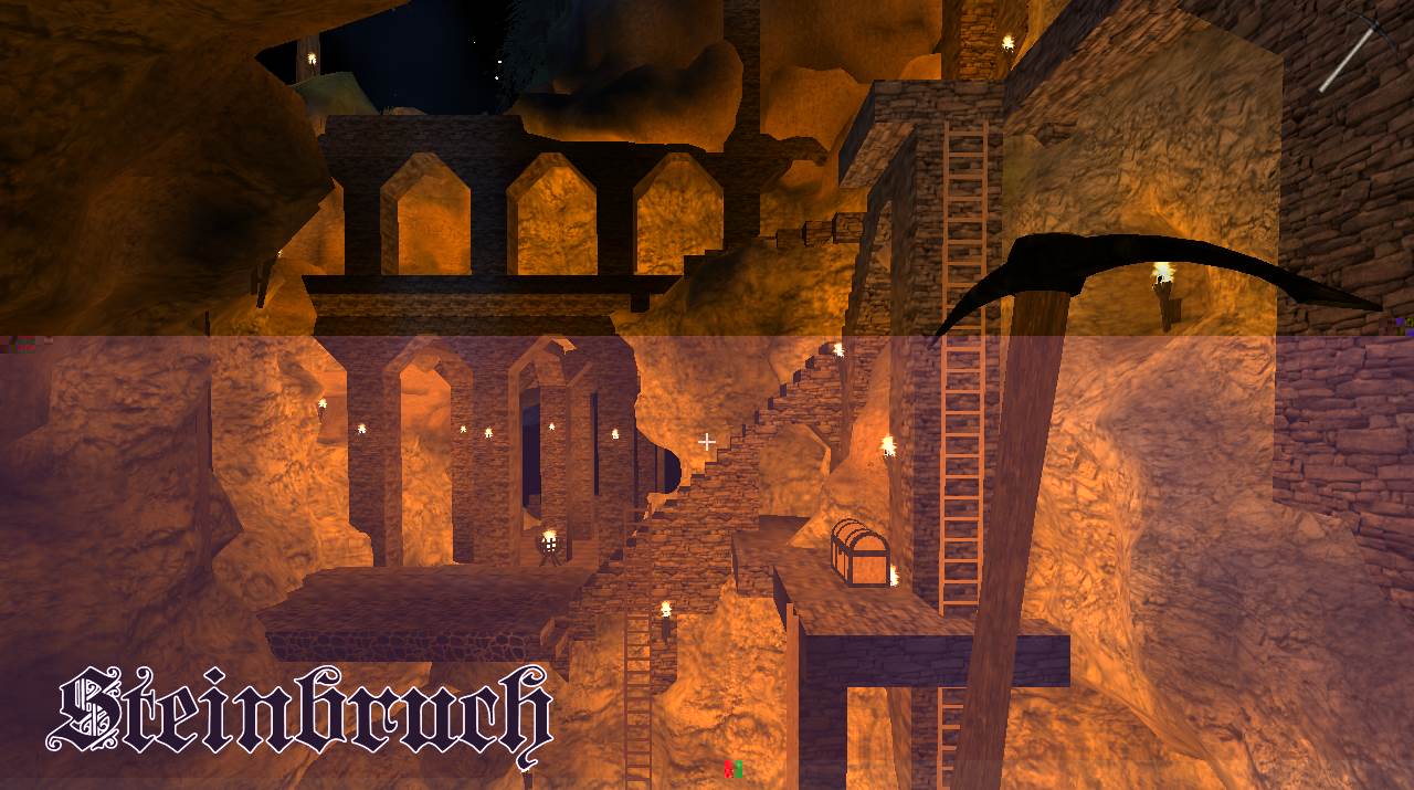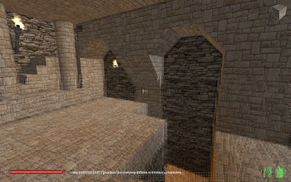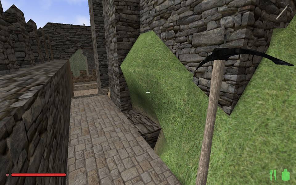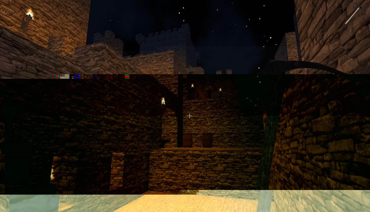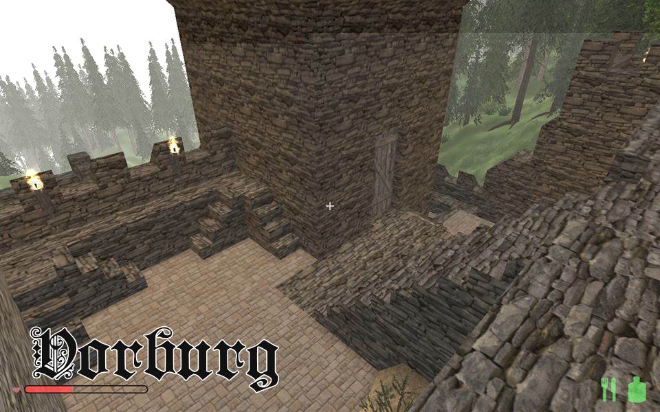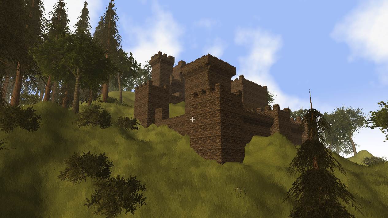 In der letzten Nacht, wurde die Kaverne, die durch den Abbau für die Burg entstand, angefangen in eine große Halle umzubauen, Säulen gestützt die hohe Decke, kreative Vollmondnacht genutzt, da ich mir eh Gedanken machen musste, wie die Oberburg aussehen soll und kann, dort hab ich das obere Torhaus gebaut, die Vorburg ist noch im Bau, die Türme müssen noch begehbar werden, im Innenhof sprießt das Gras.